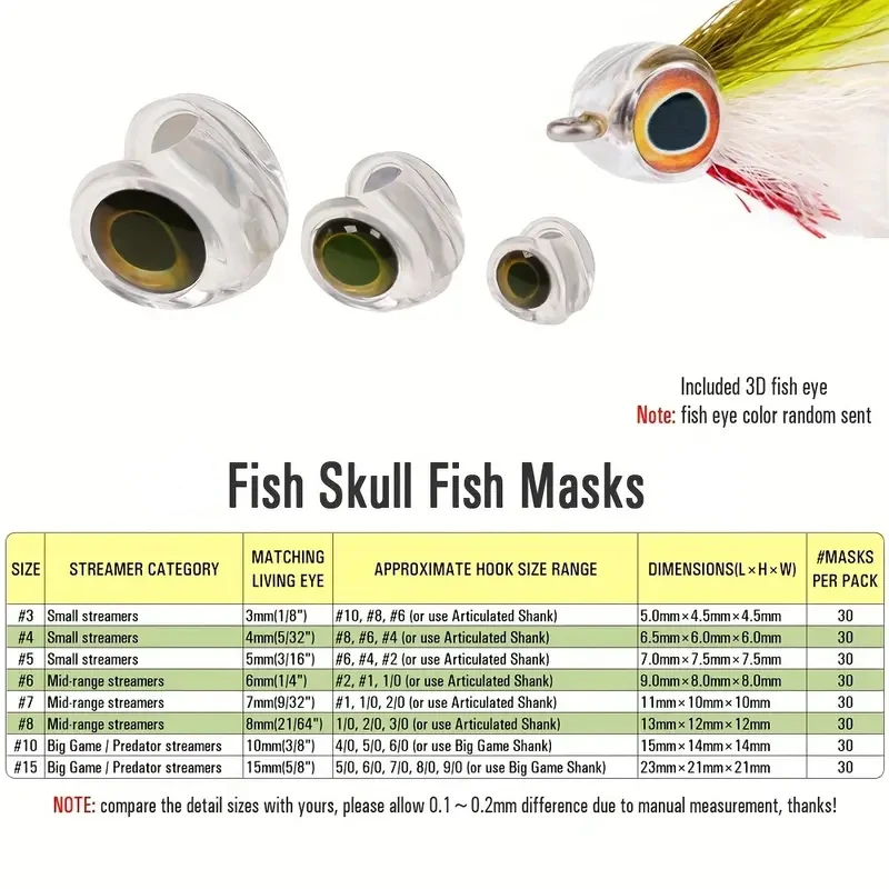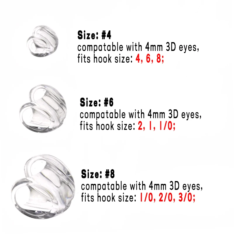 Tamaño:#8, compatible con ojos 3D de 4 mm, se adapta al tamaño del gancho: 1/0, 2/0, 3/0;