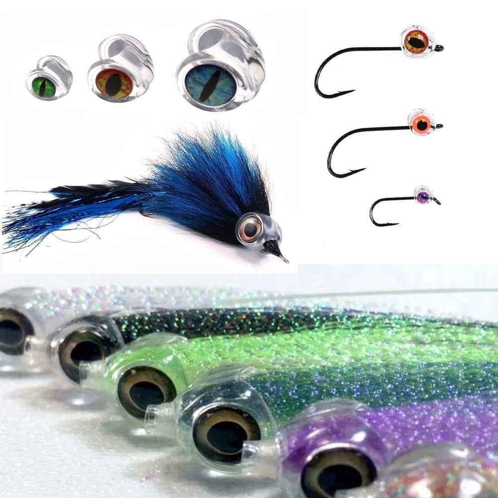 10 Uds. Máscara de pesca colgante de serpentina para atar moscas/luz 3D ojos de pez reptil ojo de dragón Lucio lubina trucha agua salada Material para atar moscas