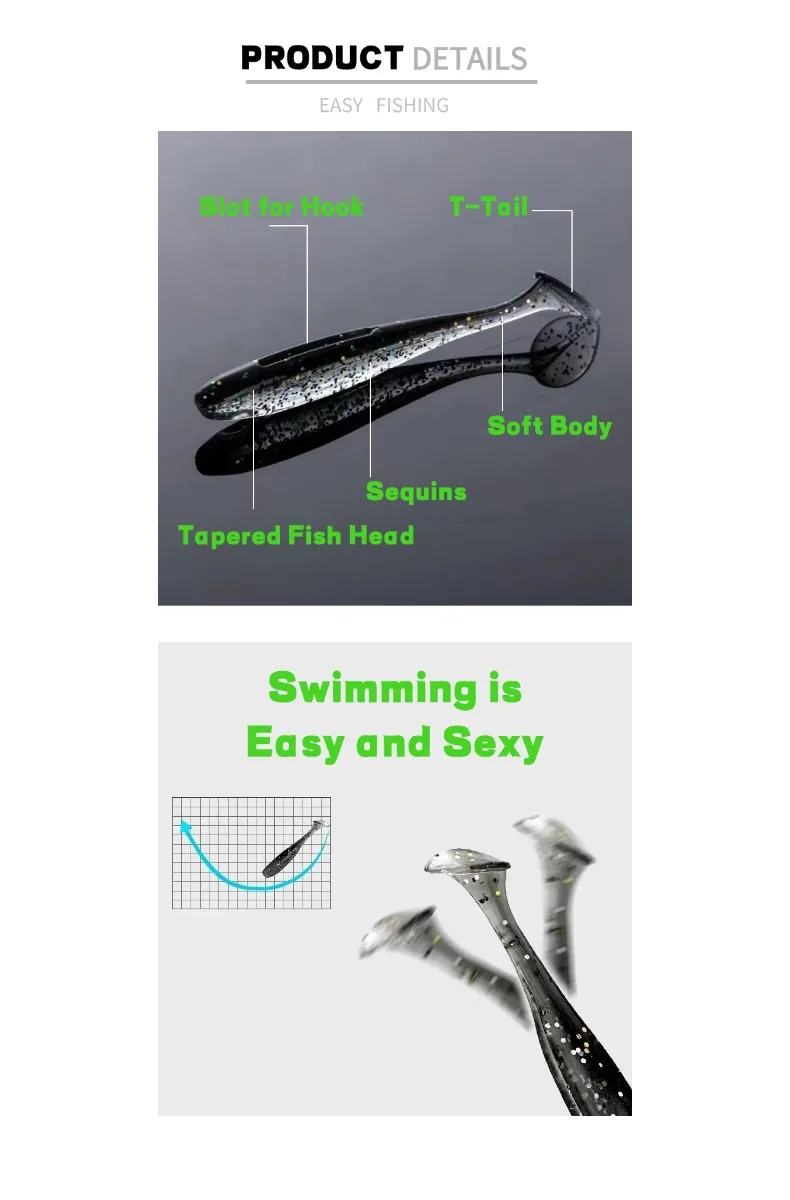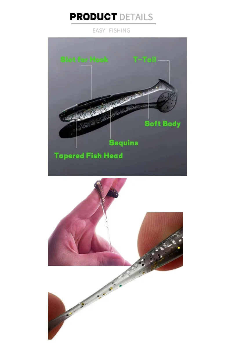 10 Uds/suave Swimbait 35mm/55mm/60mm/75mm flotante cola en T señuelo de pesca suave Iscas cebo artificial lubina perca cebos de pesca