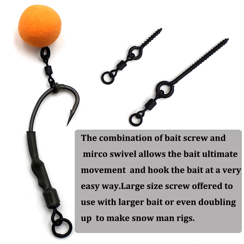 La combinación de tornillo de cebo y Mirco giratorio permite el movimiento final del cebo y engancha el cebo de una manera muy fácil. Tornillo de gran tamaño ofrecido para usar con cebo más grande o incluso doblar para hacer aparejos de hombre de nieve.