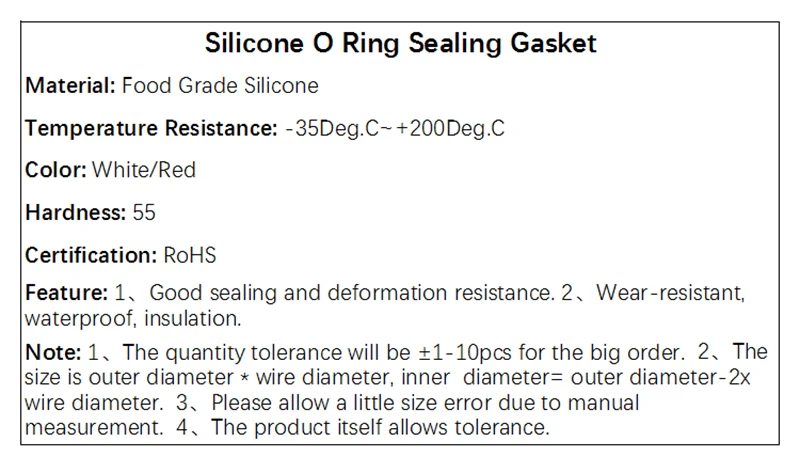 10 Uds VMQ junta tórica espesor CS 2mm OD 5 ~ 90mm caucho de silicona aislado arandela impermeable forma redonda blanco no tóxico