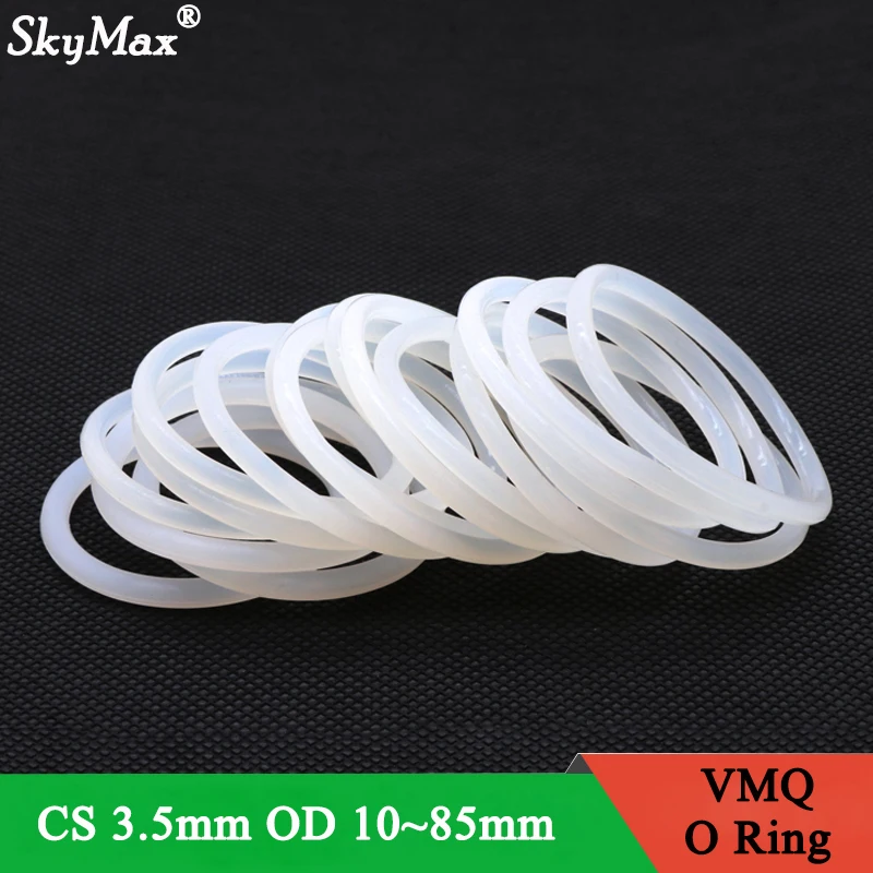 10 Uds VMQ junta tórica espesor CS 3,5mm OD 10 ~ 85mm caucho de silicona aislado arandela impermeable forma redonda blanco no tóxico