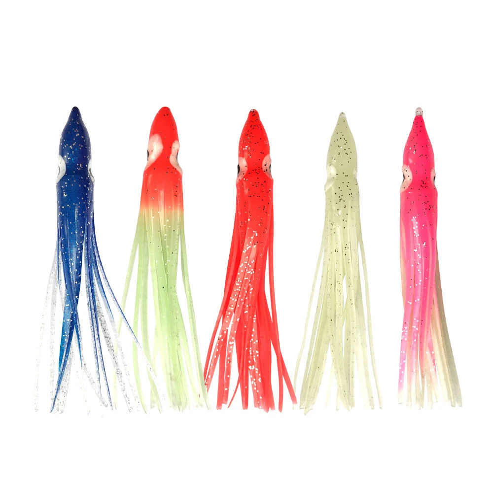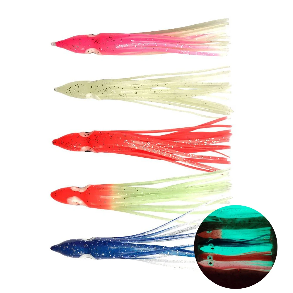 10 unids/bolsa 12cm pulpo luminoso señuelo suave goma brillo anzuelos de calamar faldas pez vela cebos artificiales accesorios de pesca