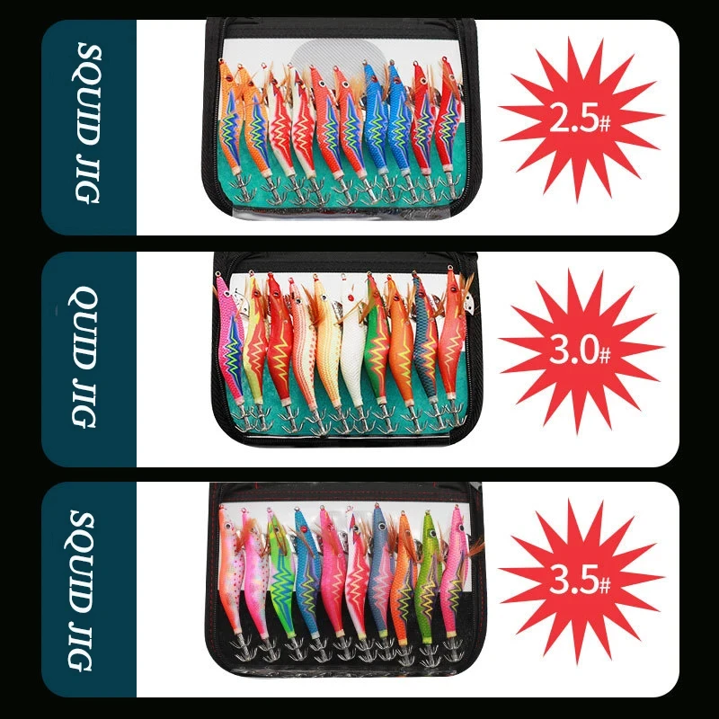 10 unids/bolsa 2,5 # 3.0 # 3.5 # Juego de plantillas luminosas de calamar y camarones, juego de señuelos de pesca en el mar, sepia Artificial, pulpo, pesca de invierno