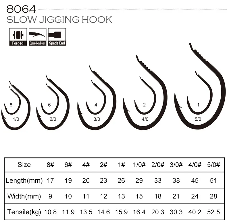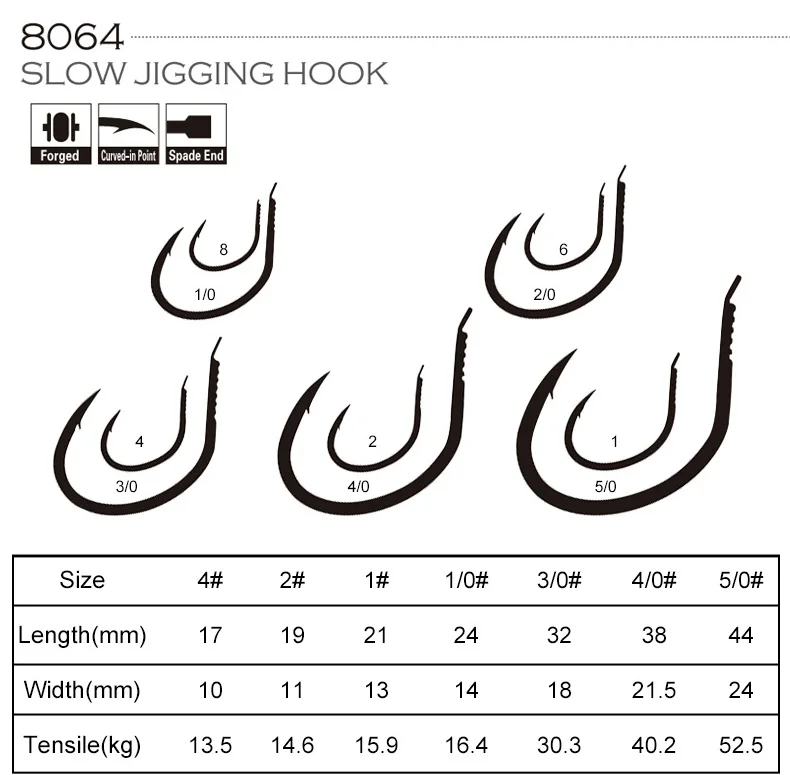 10 unids/bolsa 8064 1X anzuelo de jigging ligero PIKE 1/0 2/0 3/0 4/0 5/0 anzuelos de asistencia de Metal para señuelos de plantilla anzuelos de pesca