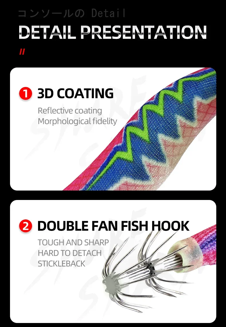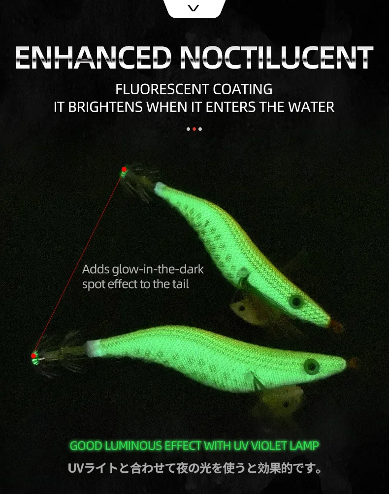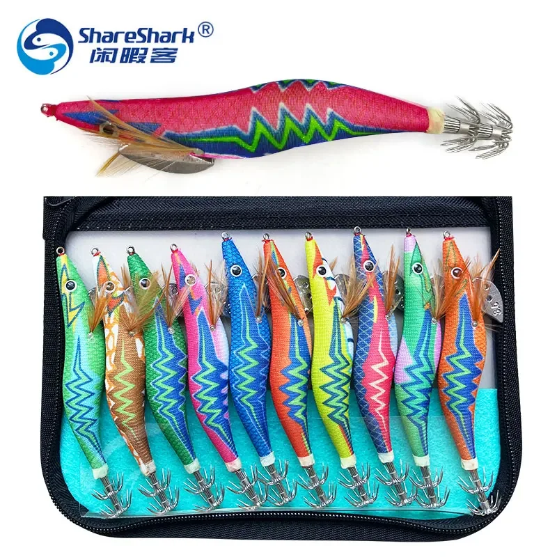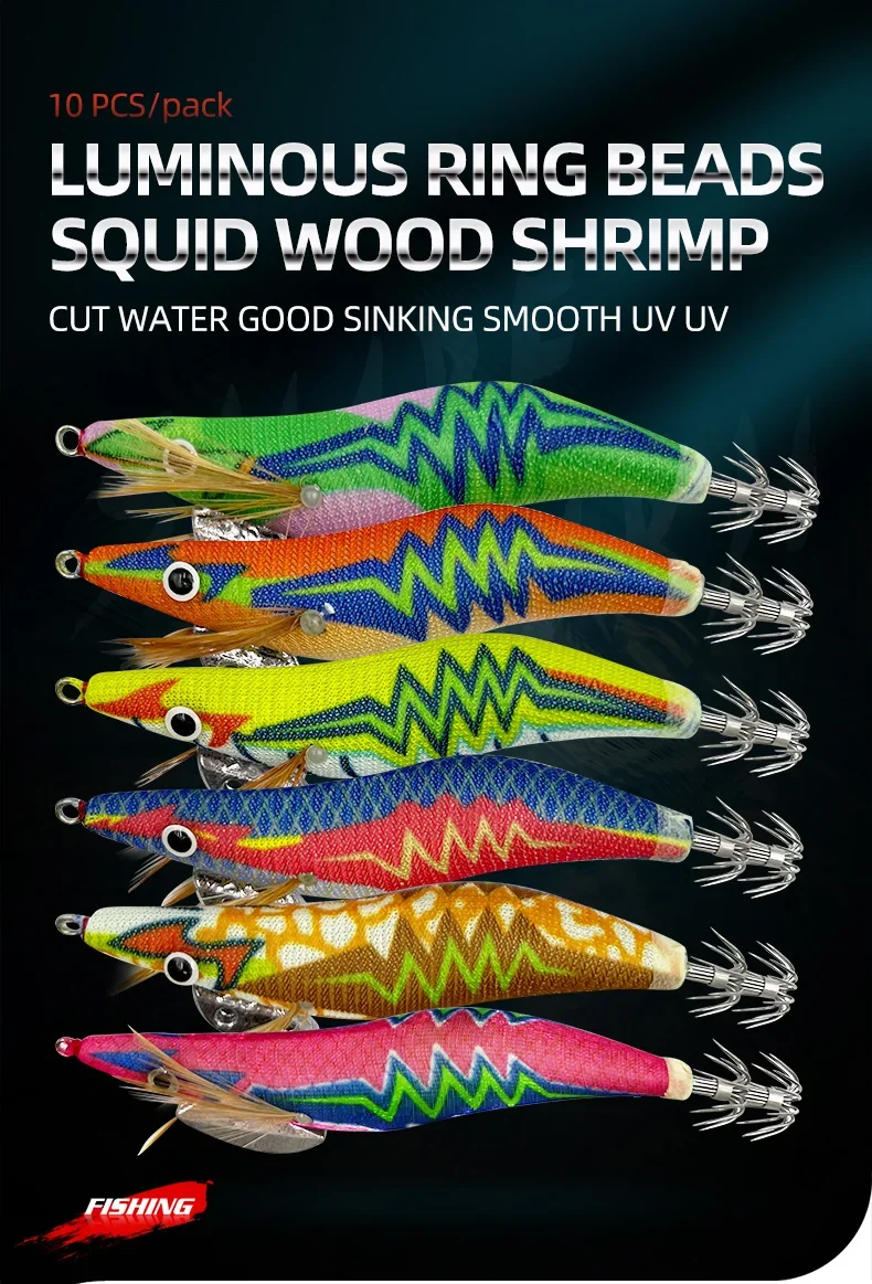 10 unids/bolsa plantilla de calamar que brilla en la oscuridad nuevo estilo señuelo de pesca plantillas de calamar luminosas con 2,5#,3.0#,3.5# Gancho