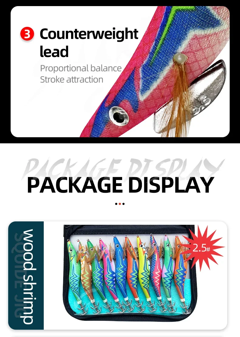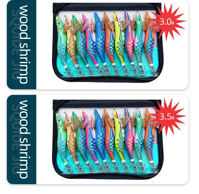 A principios de temporada, antes de junio, los calamares están a menor escala, por lo que se recomiendan jigs que van entre 1,8 y 2,5.A partir de julio, los calamares son mucho más grandes, por lo que usar la talla 2,5 y más es bueno.Las plantillas más grandes ofrecen la ventaja de lanzar más y, por lo tanto, cubriendo más área. Por la noche, los calamares pueden ser exigentes, así que use una variedad de tamaños de plantillas, cayendo a una plantilla más pequeña para atraerlas.Para la pesca de calamar diurna, optamos por plantillas de mayor tamaño entre 3,0 y 3,5 ya que los calamar generalmente se sostienen cerca de la parte inferior, por lo que necesita un poco más de peso para bajarlas.Nombre del productoPlantillas de calamarTamaño2.5#/3.0#/3.5#Color10 piezasEmbalaje10 unids/bolsa