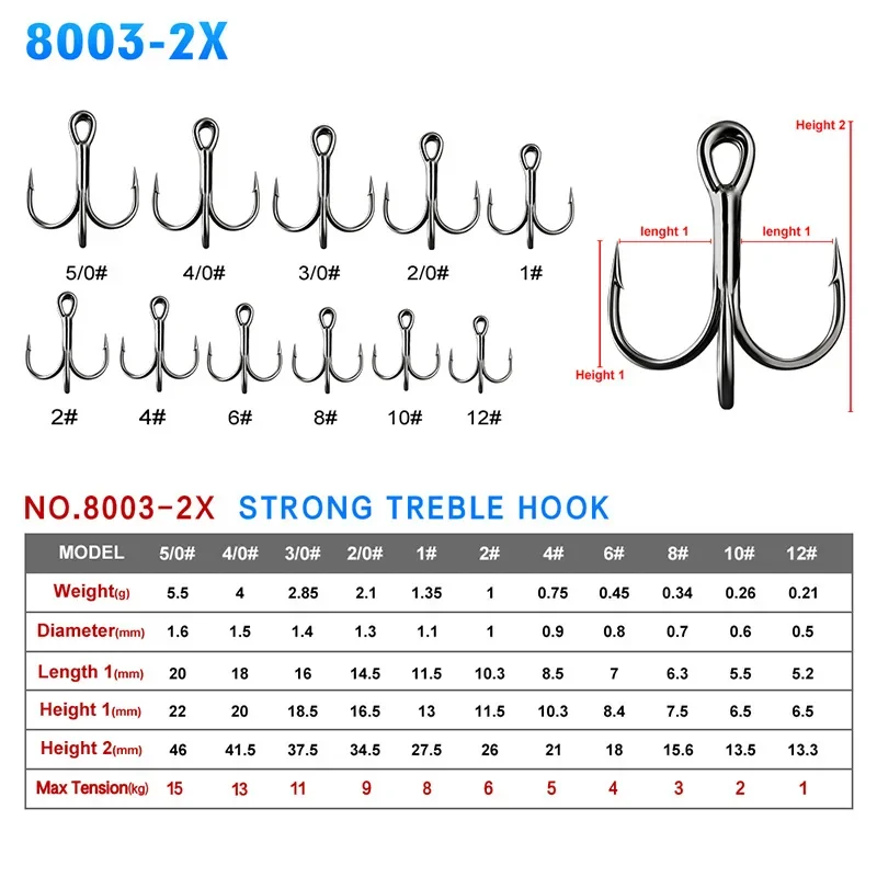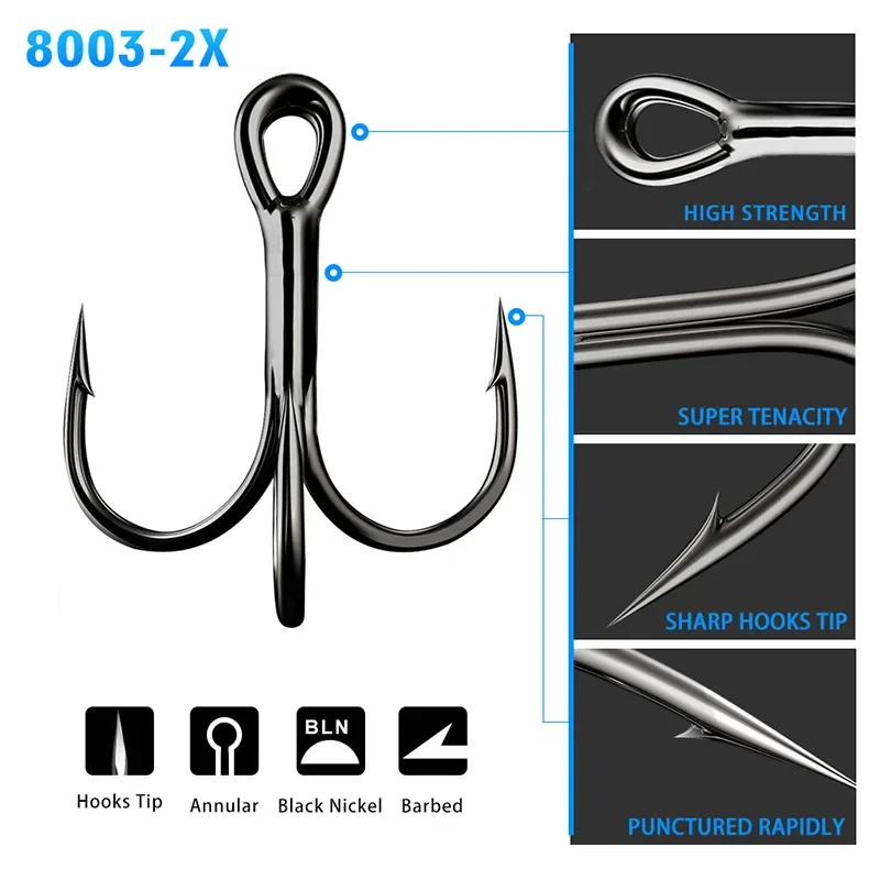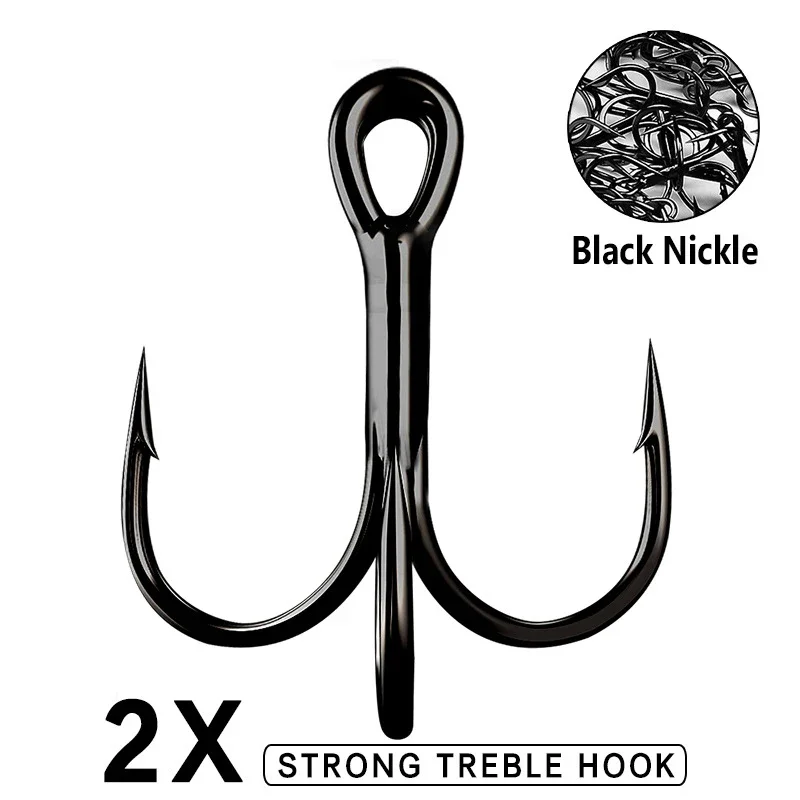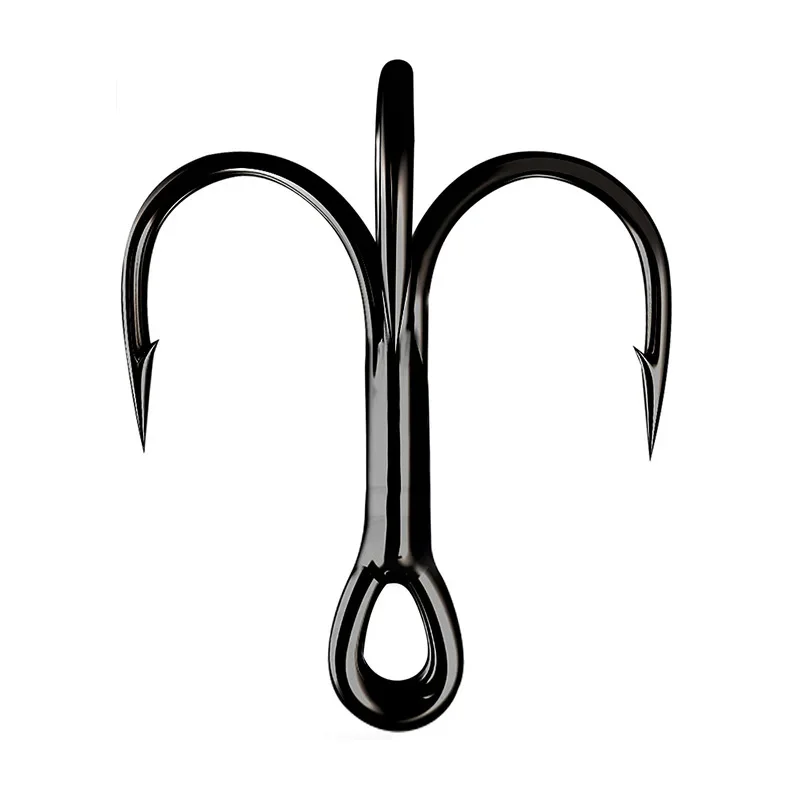 10 unids/caja anzuelo de pesca negro 2X anzuelos triples volcados de acero alto en carbono aparejos de pesca triples curvados redondos para lubina