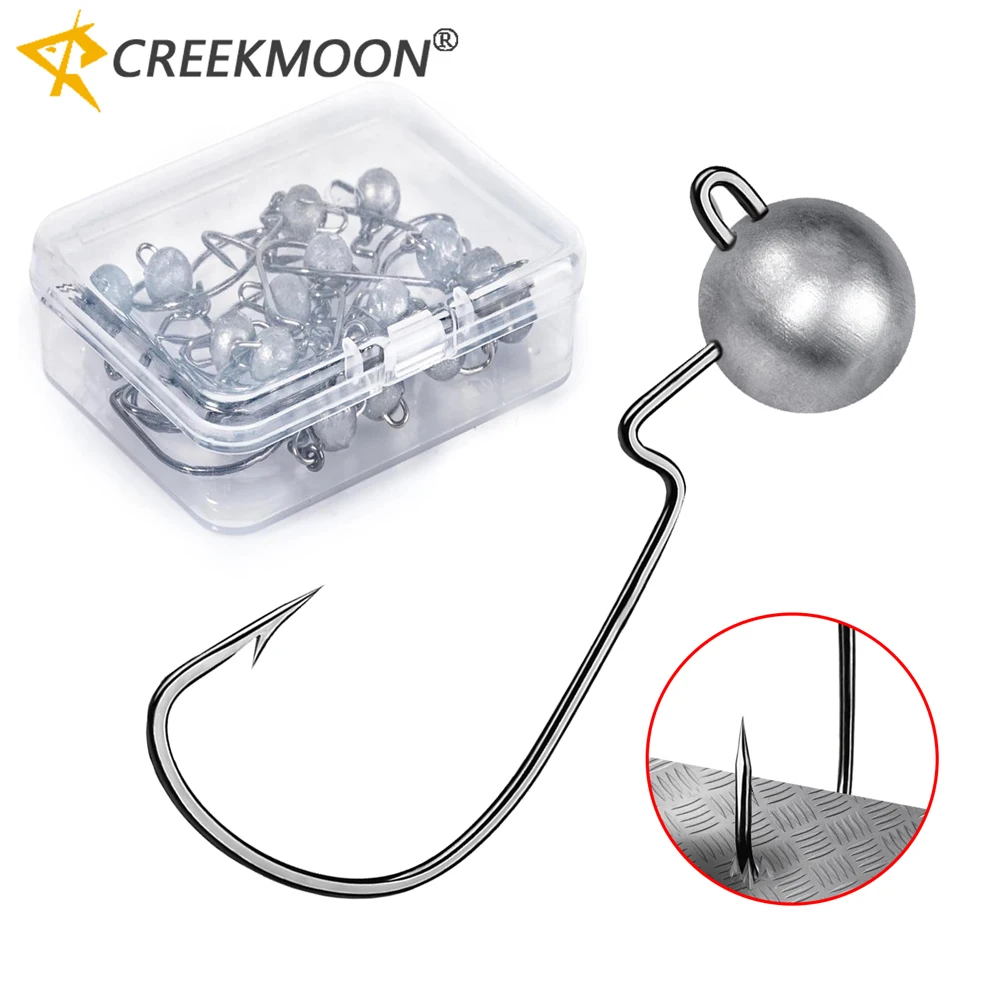 10 unids/caja anzuelos con cabeza de anzuelo de manivela Rockfish para señuelo de gusano suave Pesca de lubina para Pesca buenos productos 3,5-10g accesorios para Lucio y trucha