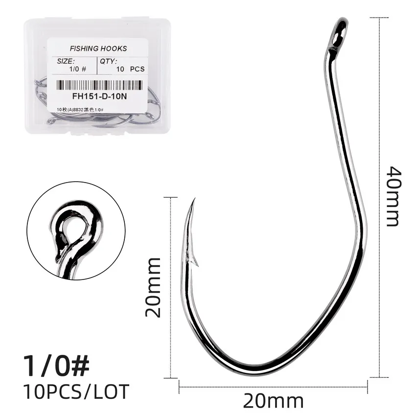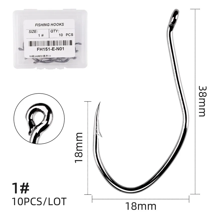 10 unids/caja anzuelos de pesca de bagre con púas anzuelo de bagre de acero rico en carbono 6/0-10 anzuelo V anzuelo circular afilado caja de aparejos de pesca