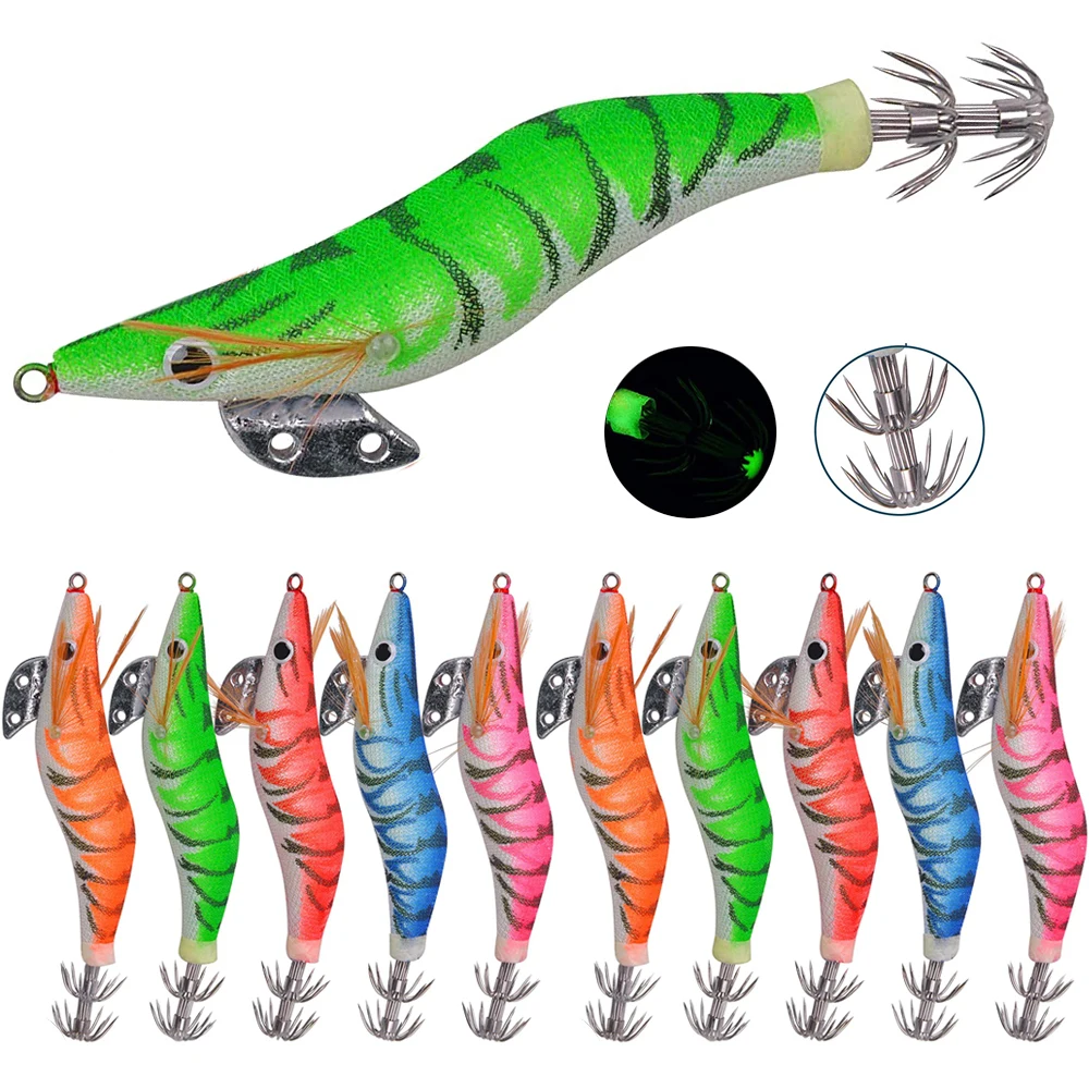 10 unids/lote 2,5 #10cm Pesca Plantilla de calamar Artificial señuelo de Pesca anzuelo de calamar pulpo sepia Camarón señuelos de Pesca duros