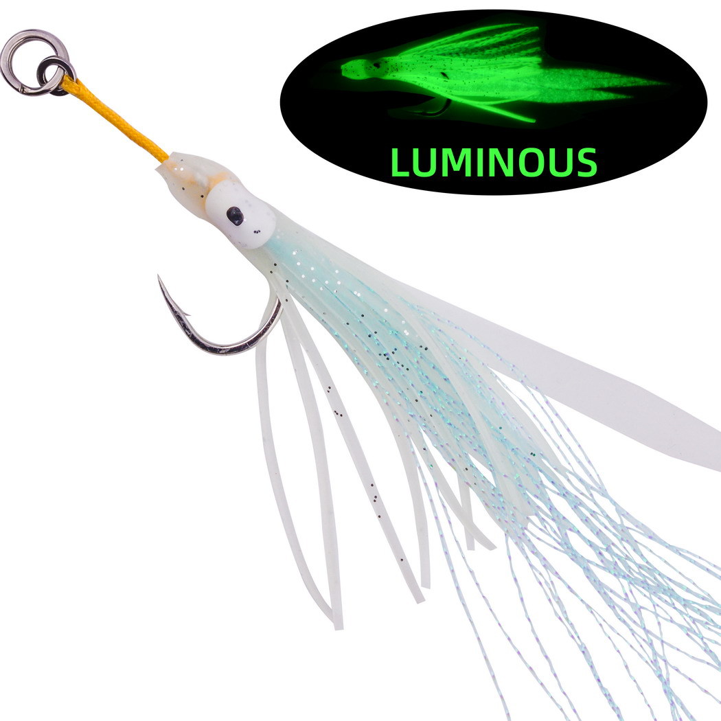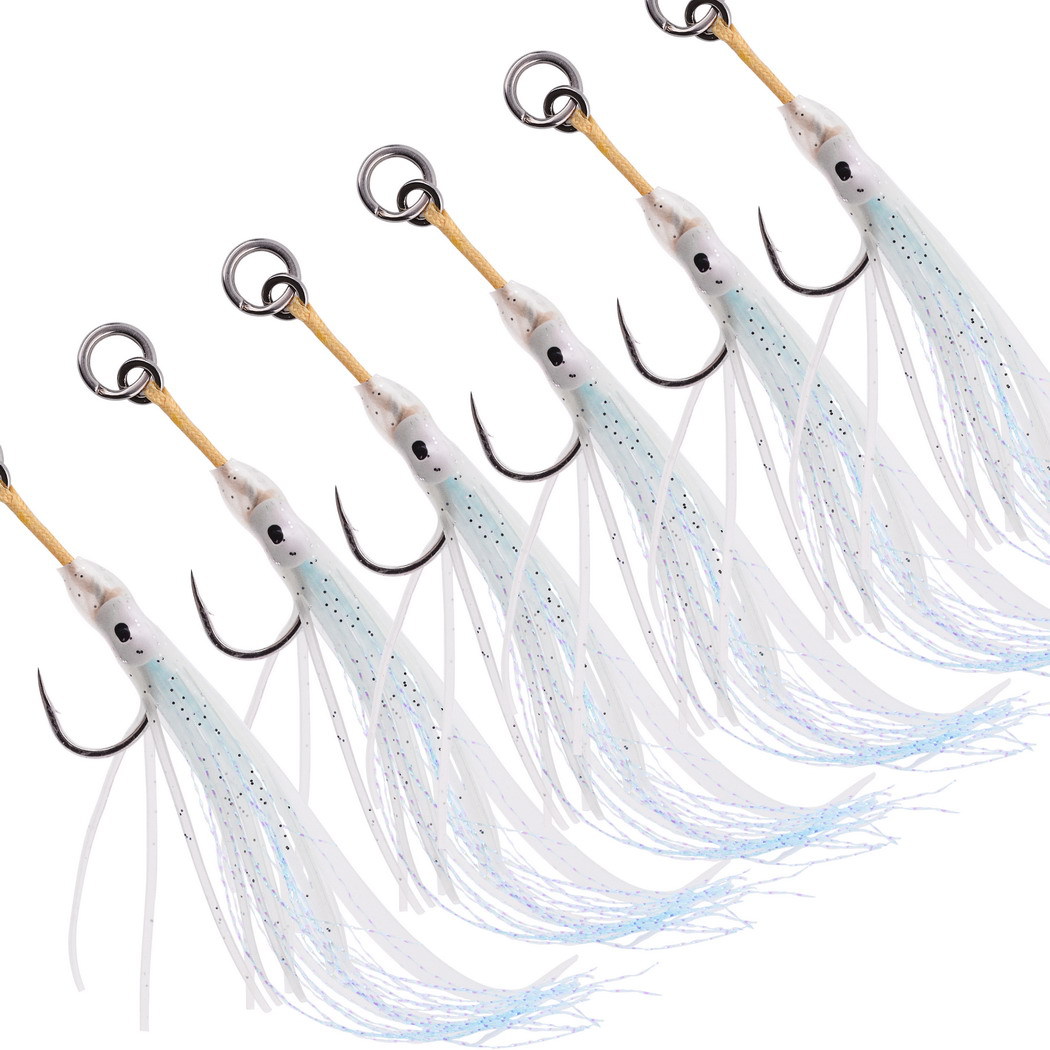 10 unids/lote anzuelo de asistencia 2/0 3/0 5/0 falda de goma brillante anzuelo de calamar anzuelos de señuelo de pesca de Kevlar anzuelos de plantilla de agua salada