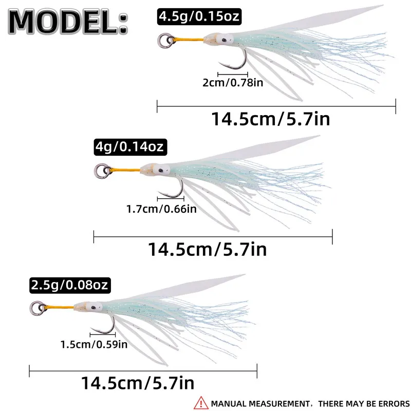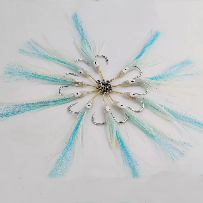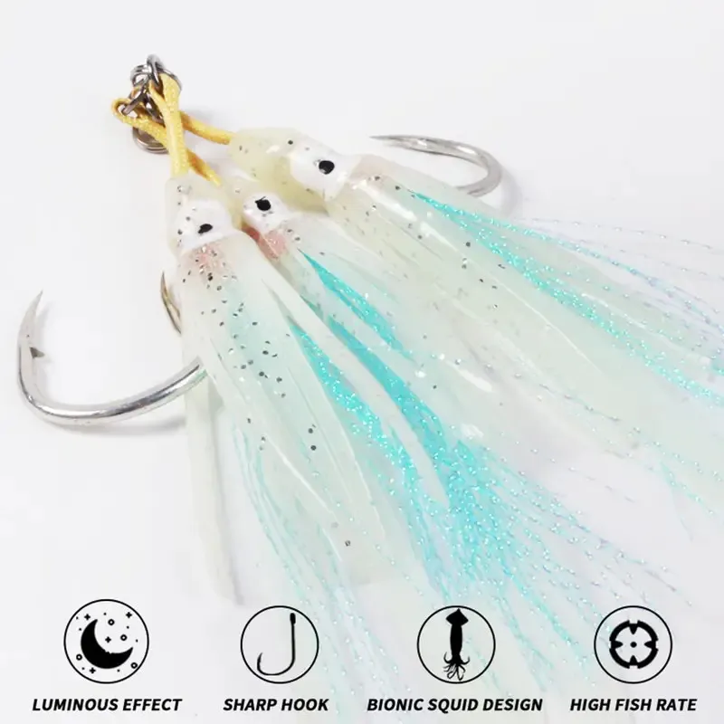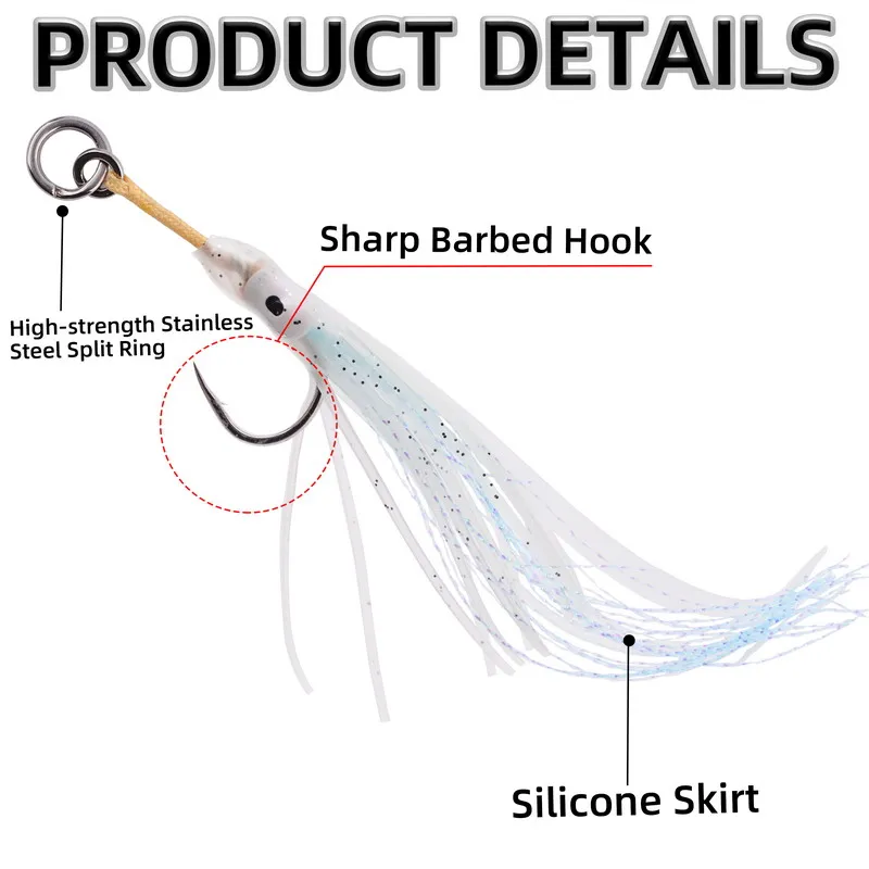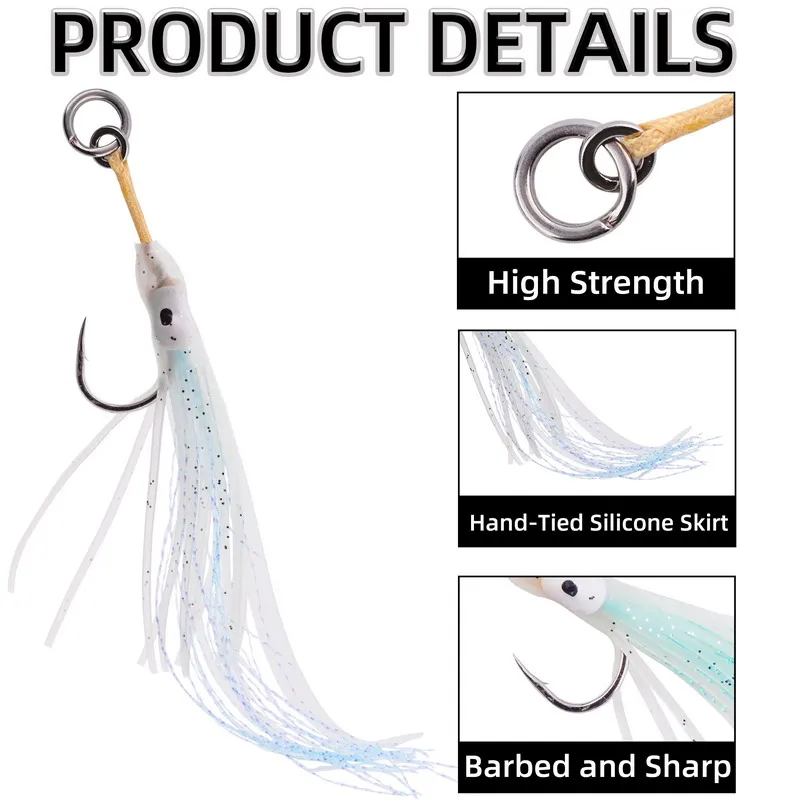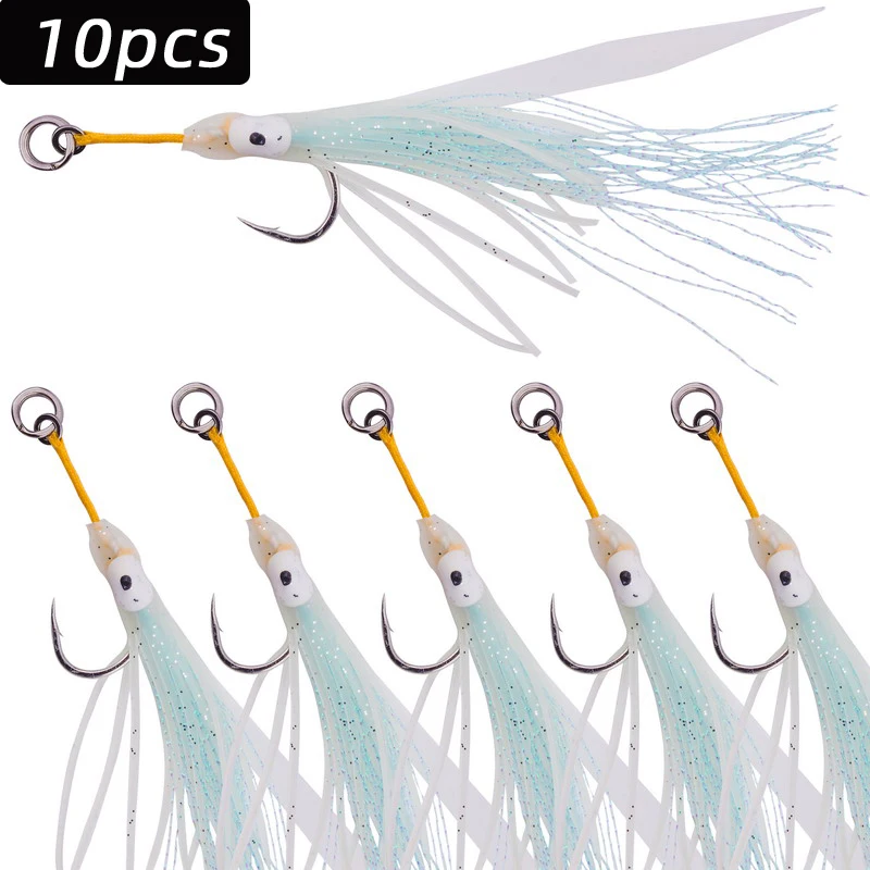 10 unids/lote anzuelo de asistencia 2/0 3/0 5/0 falda de goma brillante anzuelo de calamar anzuelos de señuelo de pesca de Kevlar anzuelos de plantilla de agua salada