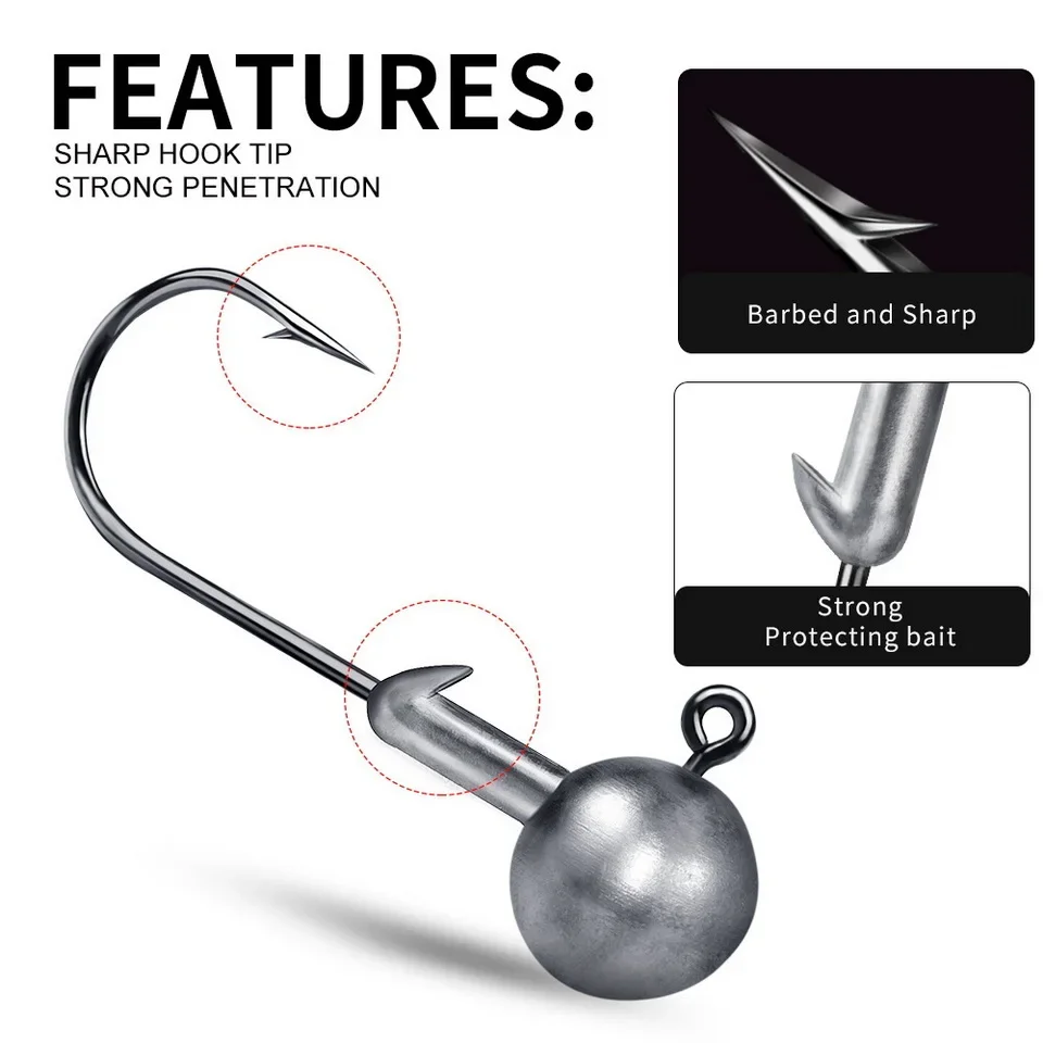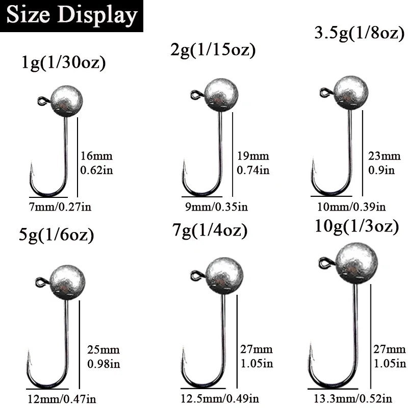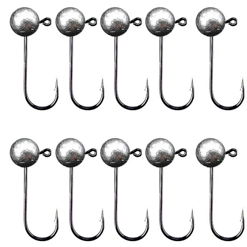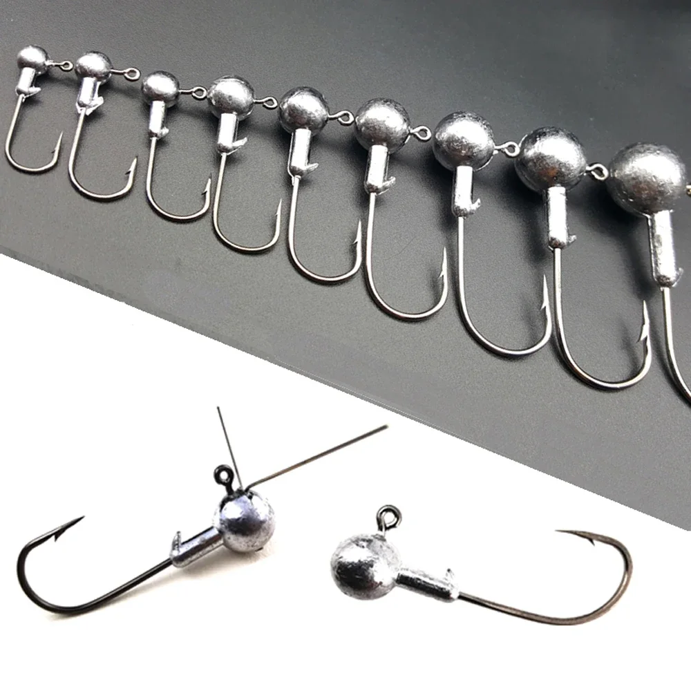 10 unids/lote anzuelo de cabeza grande 1g 1,5g 2g todo el tamaño bola redonda anzuelo de cabeza sin malezas vástago largo cabeza de plantilla para pesca de gusanos blandos
