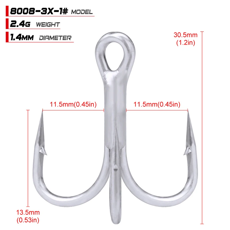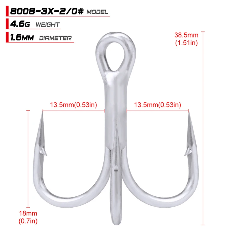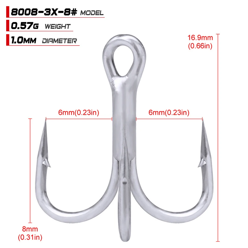 10 unids/lote anzuelo de pesca de agua salada anzuelo triple de estaño mate 2/0#-1/0#-1#-2#-4#-6#-8# Gancho 3X de alta resistencia de acero de alto carbono