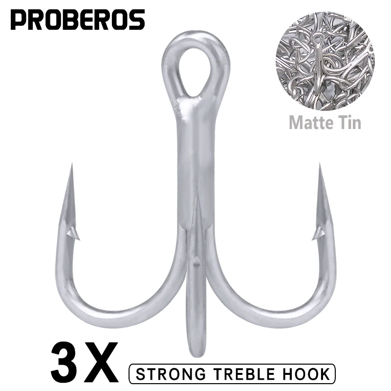 10 unids/lote anzuelo de pesca de agua salada anzuelo triple de estaño mate 2/0#-1/0#-1#-2#-4#-6#-8# Gancho 3X de alta resistencia de acero de alto carbono