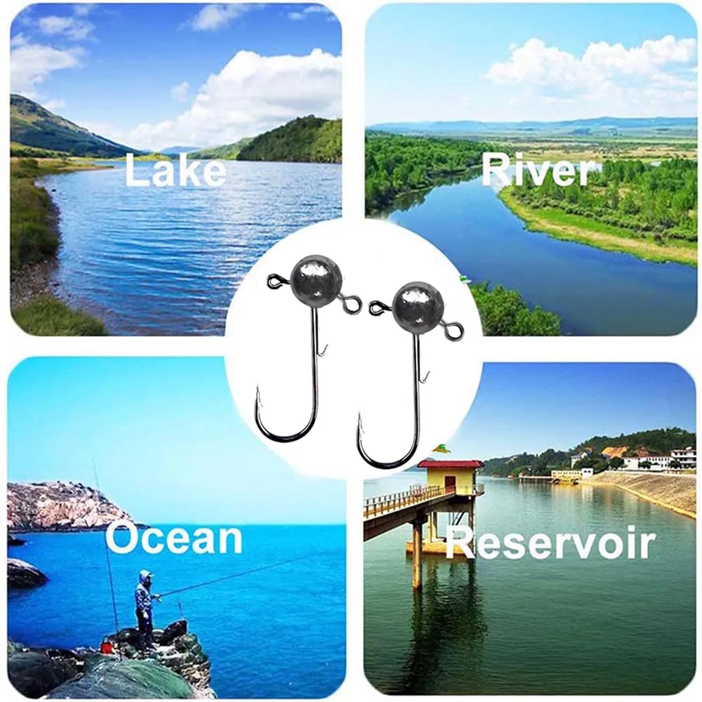10 unids/lote anzuelo de pesca con cabeza de anzuelo 3g 4g 6g 9g anzuelo de bola redonda anzuelo sin hierba para pesca de gusanos blandos aparejos de bricolaje