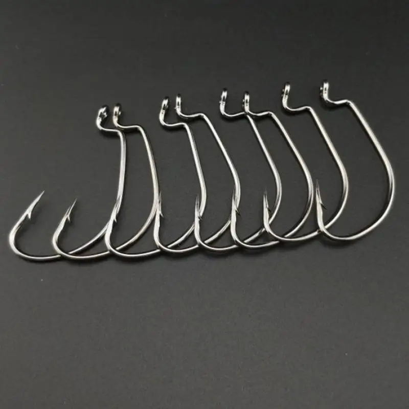 10pcs Fishing Offset Hook Carbon Steel Jig Hooks Big Crank Bass Hook Crank Barbed Hook For Soft Pesca Fishing Lure