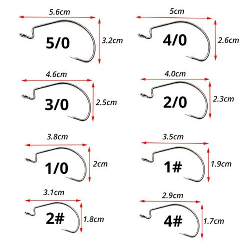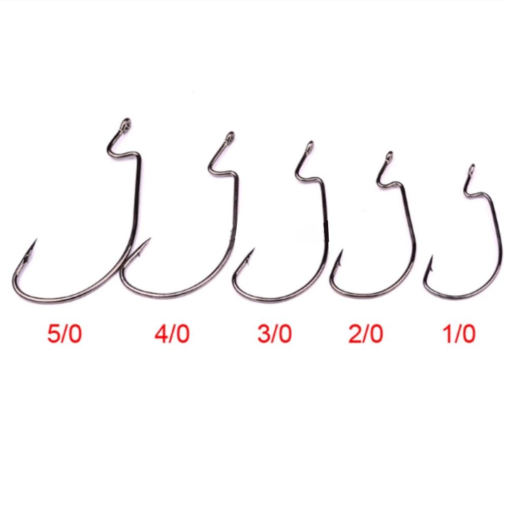 10 unids/lote anzuelos de pesca de gusano de espacio ancho manivela anzuelo de lubina grande anzuelo de púas de manivela de acero alto en carbono negro para señuelo de pesca suave
