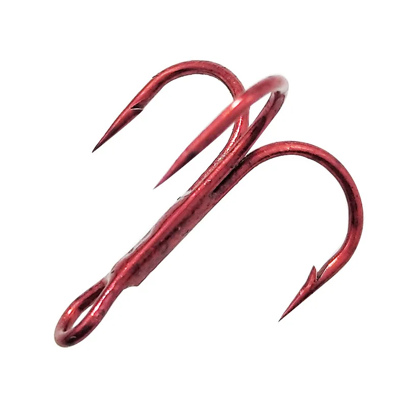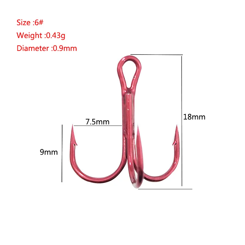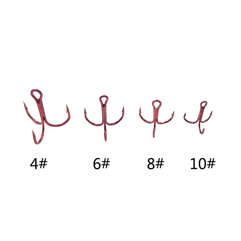 Descripción :10 unids/lote anzuelos de pesca rojos de agua salada súper afilados, anzuelos triples de acero rico en carbono 3X 4# 6# 8# 10# Aparejos de ganchos de alta resistencia