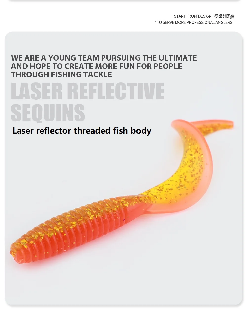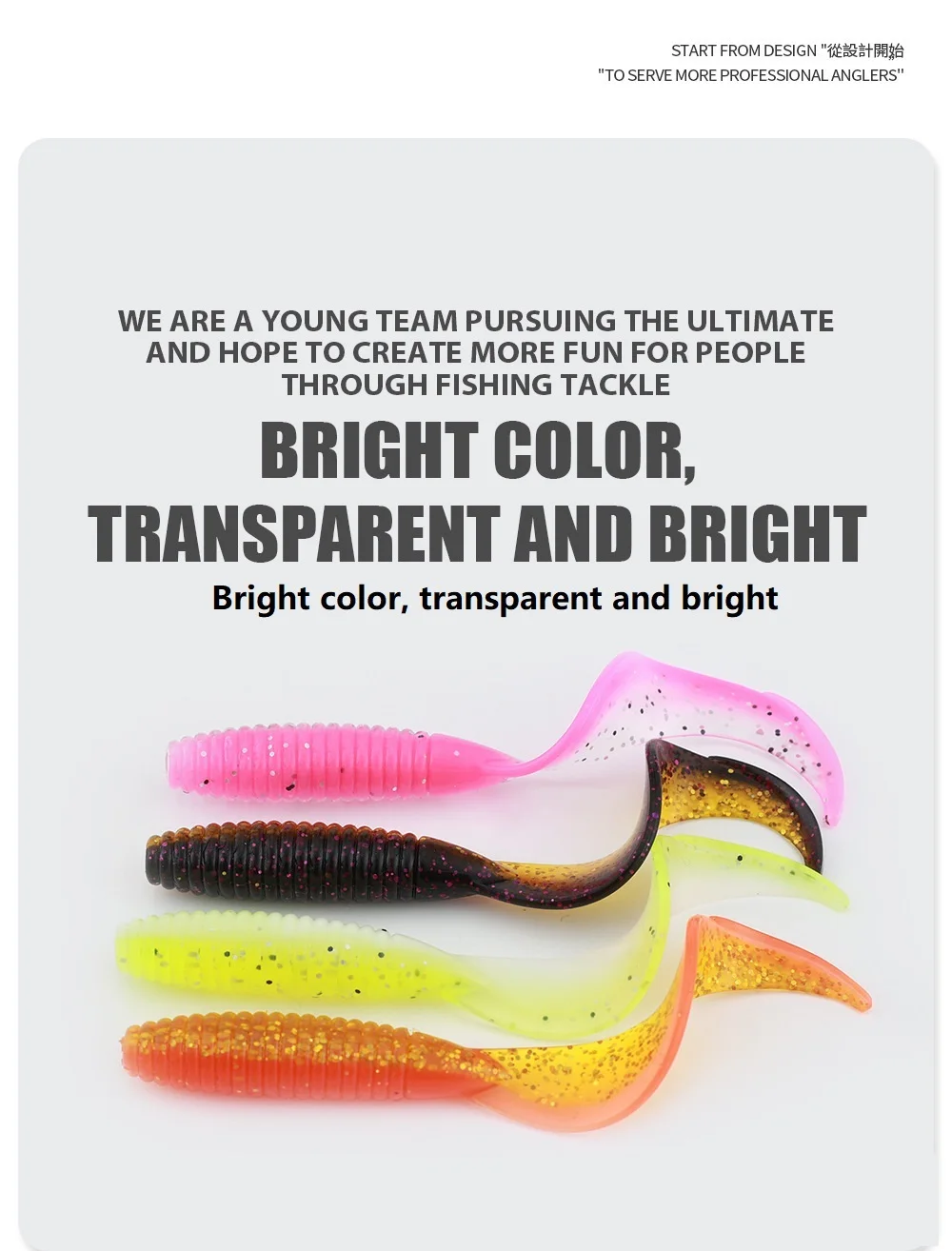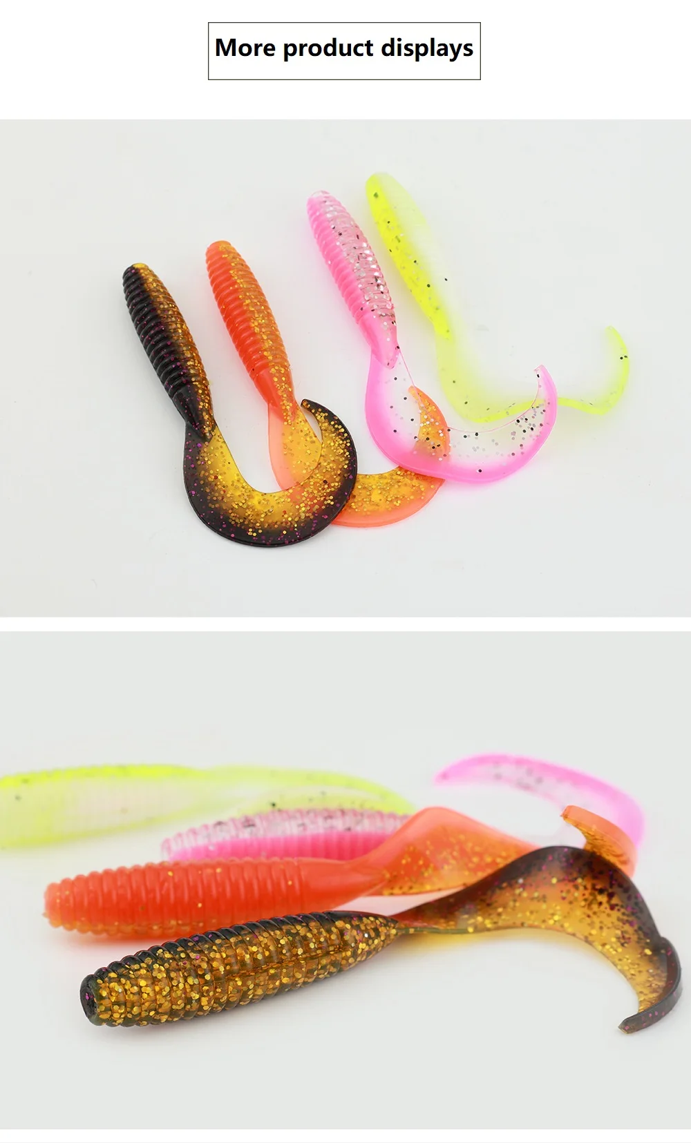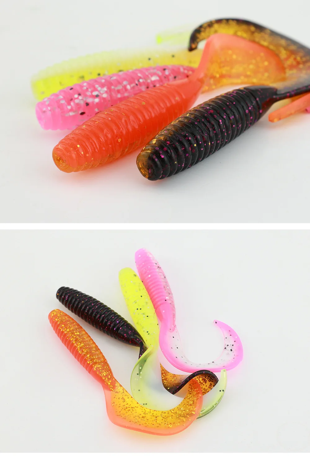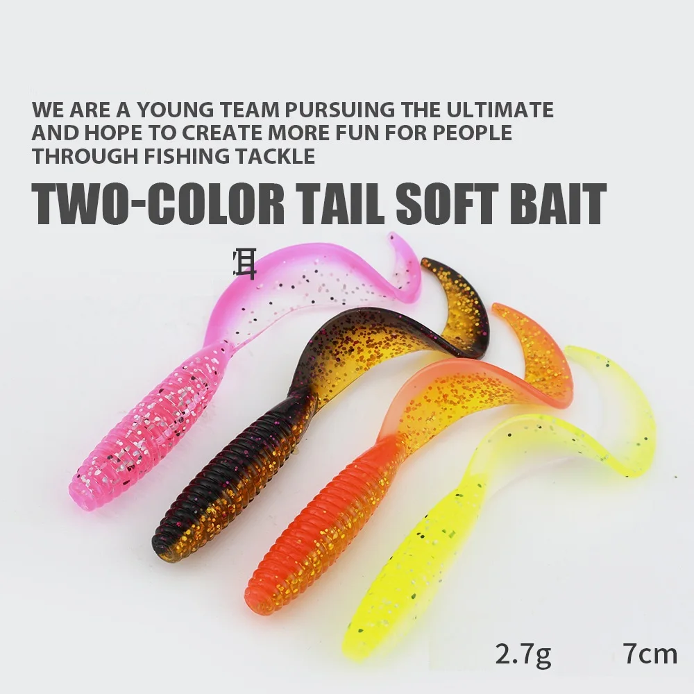 10 unids/lote cebo suave en espiral de dos colores 70mm/2,7g sabor a camarón plantilla Artificial Wobblers silicona Swimbait carpa aparejos de pesca de lubina