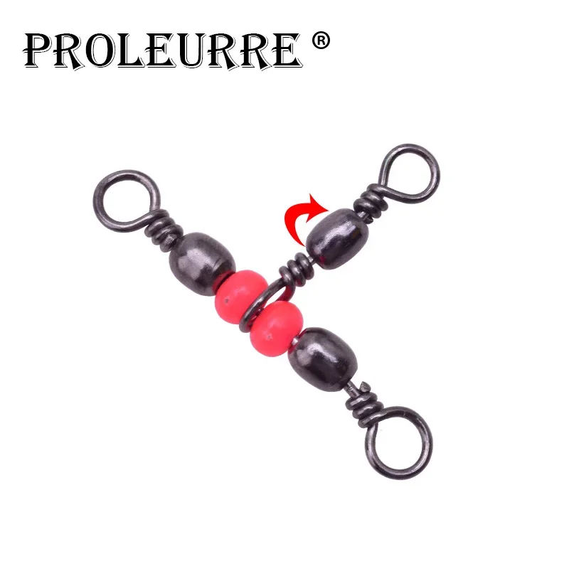 10 unids/lote giratorios giratorios de línea cruzada en forma de T de 3 vías con cuentas de perlas varios tamaños aparejos de pesca conector de señuelo de anzuelo PR-358