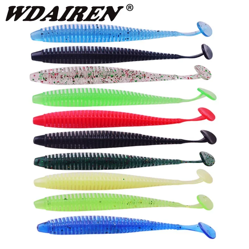 10 unids/lote Jig Wobblers Señuelos de pesca 9,5 cm 3g olor de camarón atrae rombo de silicona cebo suave trucha Pike Bass Swimbaits aparejos