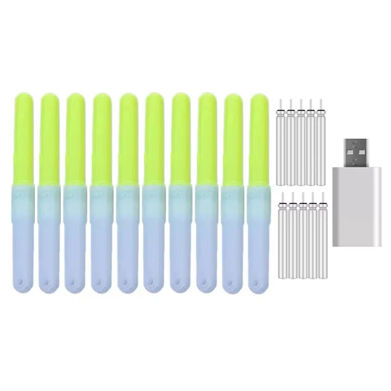 10 unids/lote palo de luz de pesca nocturna con batería recargable CR322 lámpara atractora de barra luminosa de pesca impermeable D014