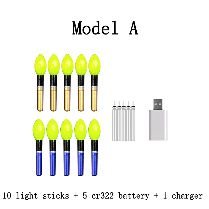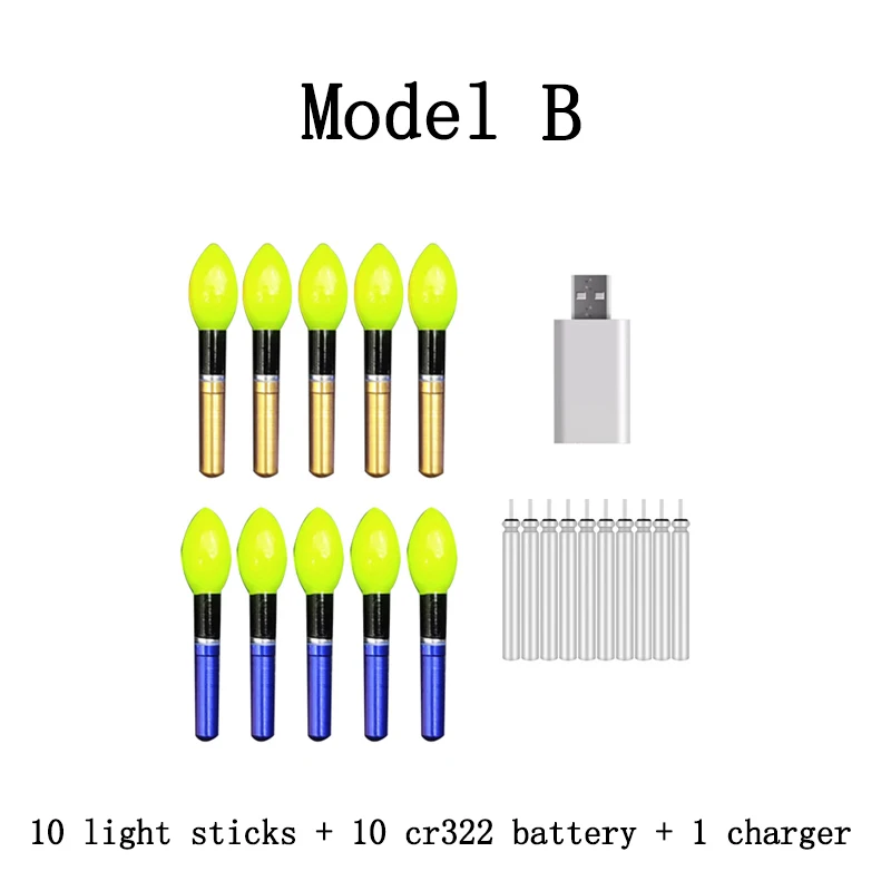 10 unids/lote palo de luz verde/rojo/naranja luz electrónica con batería recargable CR322 accesorio de aparejos de pesca nocturna D028