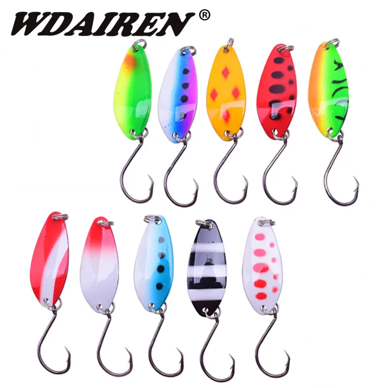 10 unids/lote pesca señuelos 4cm/6,5g cuchara de metal lentejuelas Paillette cebo escala larga de aleación de Zinc con una sola Olecranon gancho atraer kit
