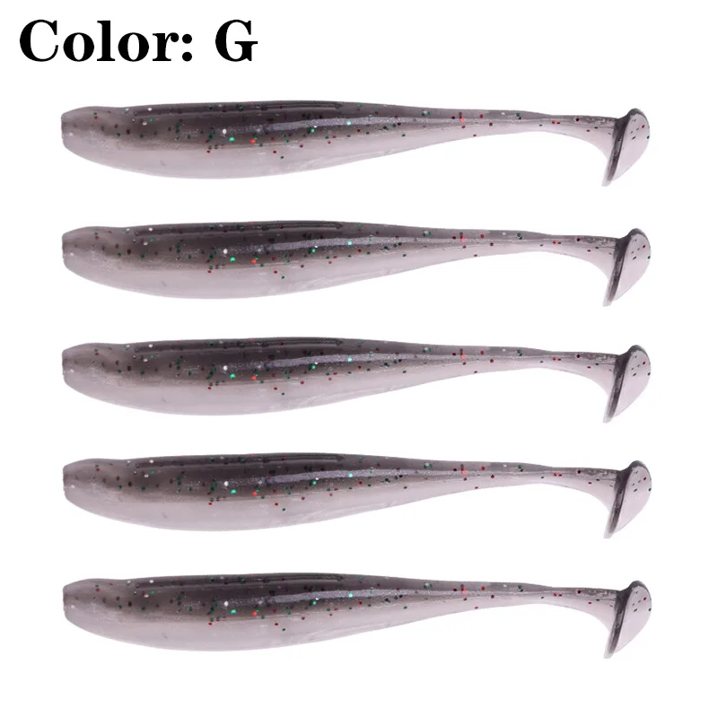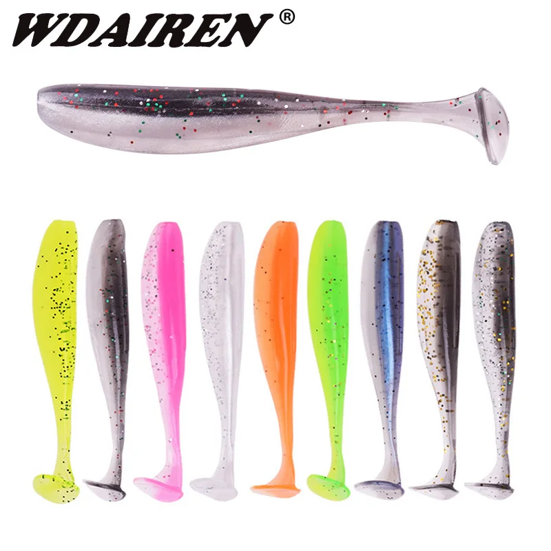 10 unids/lote T cola Wobblers cebos blandos 50mm 75mm doble colores Señuelos de pesca de silicona cebo Artificial para carpa lubina aparejos de pesca