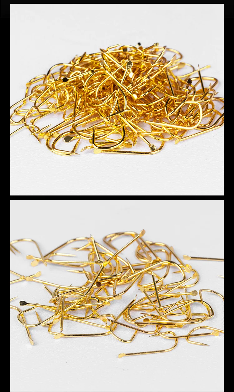 10 unids/pack anzuelos de pesca de acero rico en carbono anzuelos individuales dorados anzuelo de púas carpa accesorios de pesca de mar aparejos planos - imagen 1