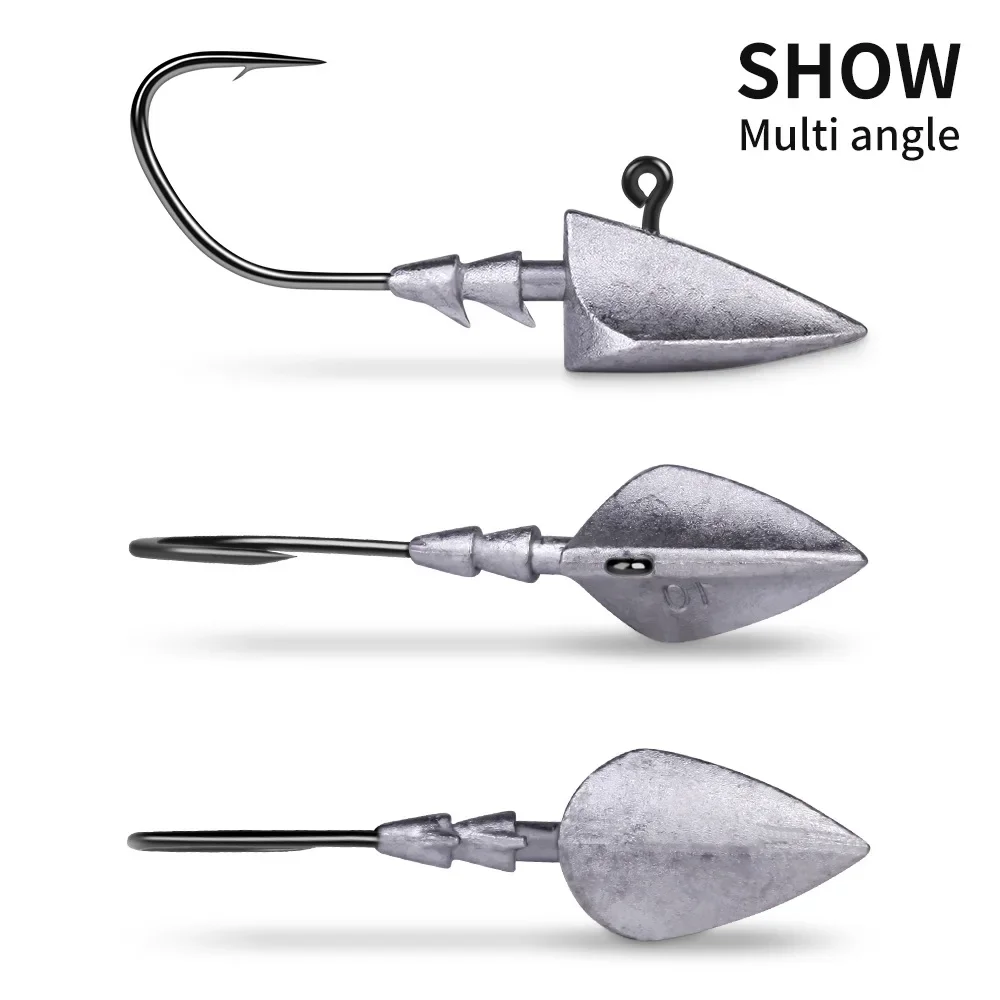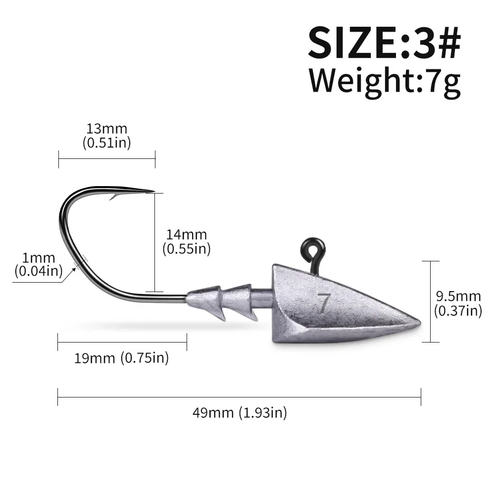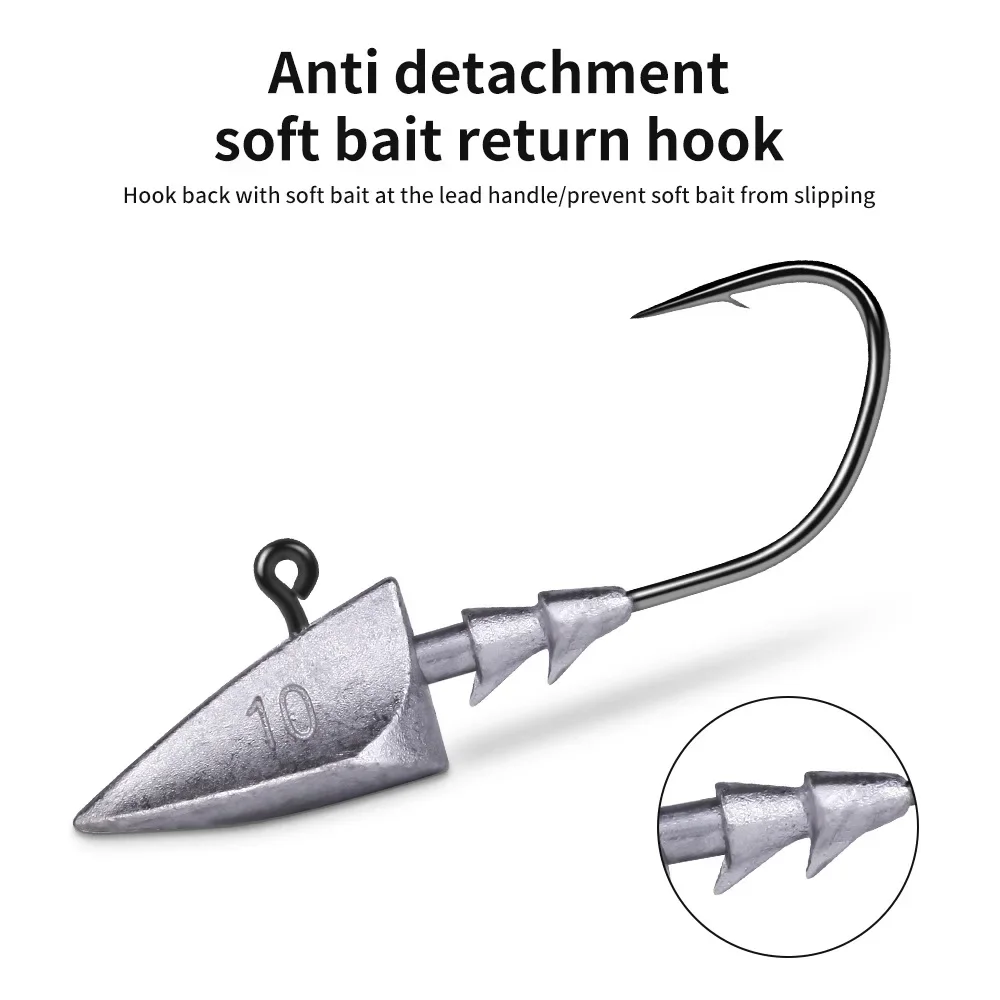 10 unids/set anzuelos de cabeza triangular 3,5/5/7/10g tipo barco anzuelo de pesca plantilla de gusano suave anzuelo volcado señuelo cabeza de plantilla anzuelo anzuelo de aparejos de pesca