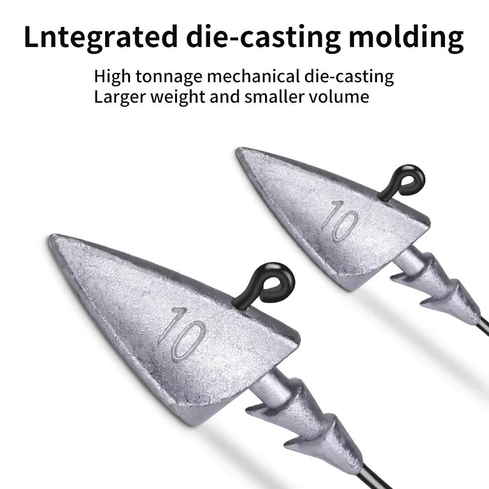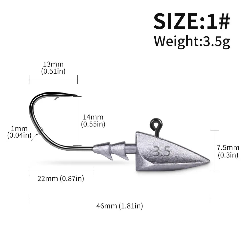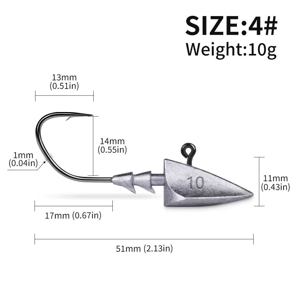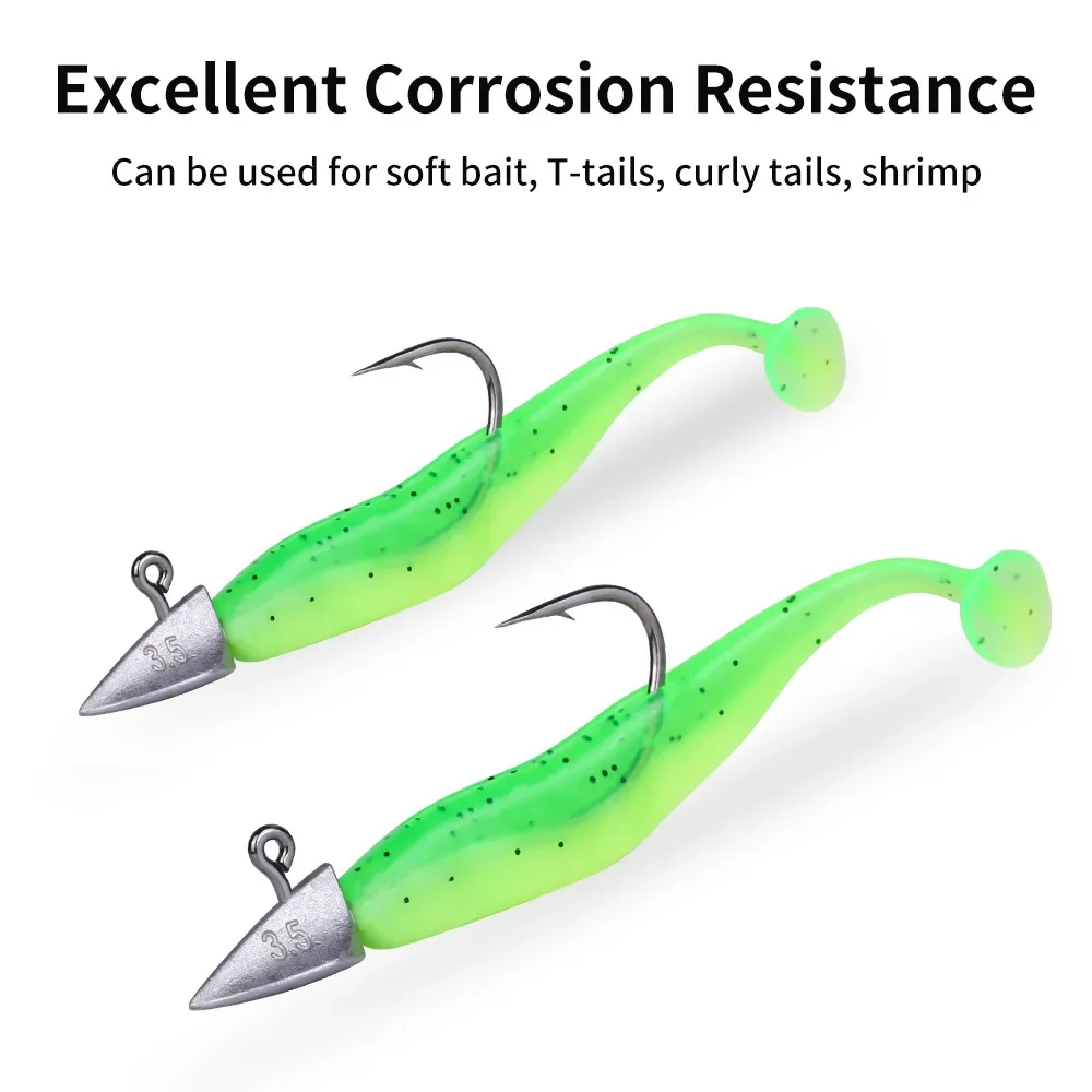 10 unids/set anzuelos de cabeza triangular 3,5/5/7/10g tipo barco anzuelo de pesca plantilla de gusano suave anzuelo volcado señuelo cabeza de plantilla anzuelo anzuelo de aparejos de pesca
