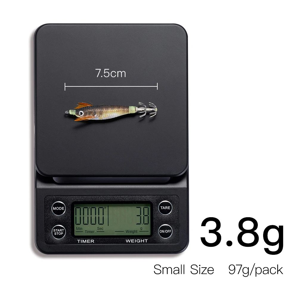 10 unids/set luminoso Horizontal calamar Jig madera camarones calamar gancho afilado señuelos pulpo sepia camarones cebos de agua salada