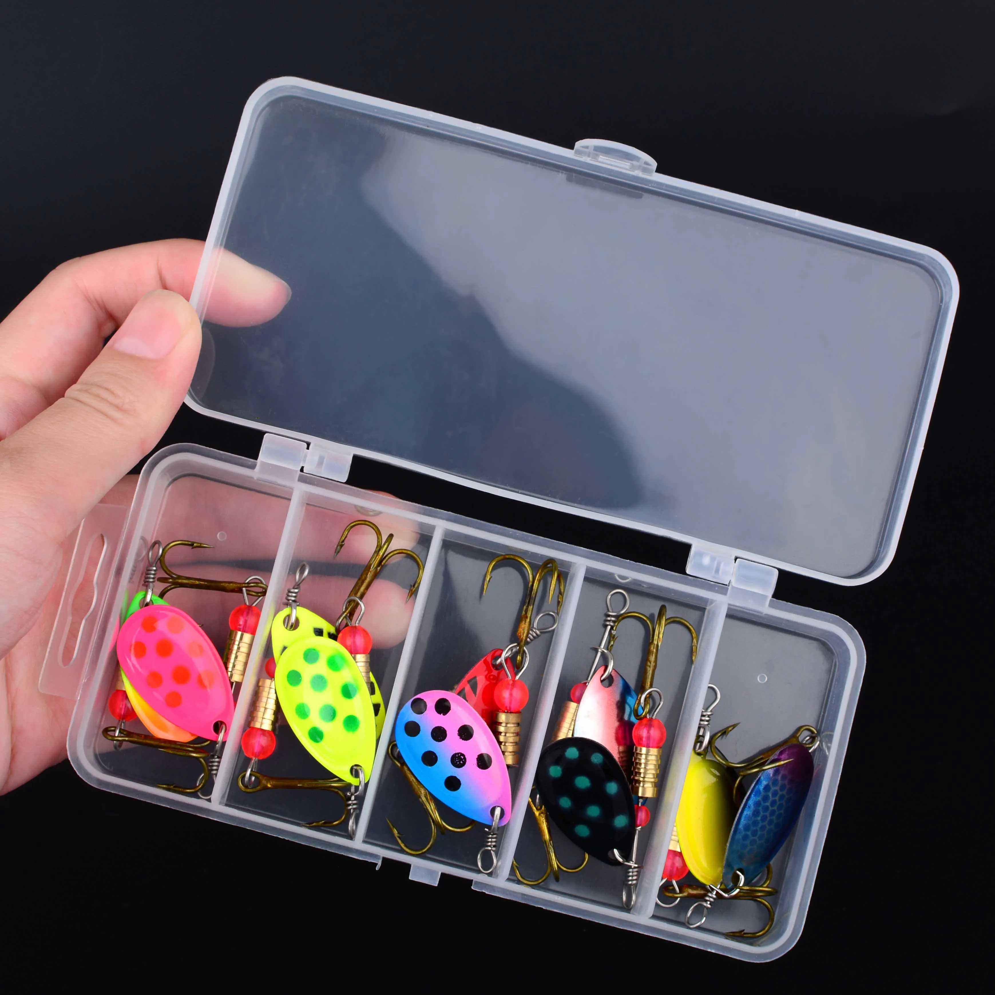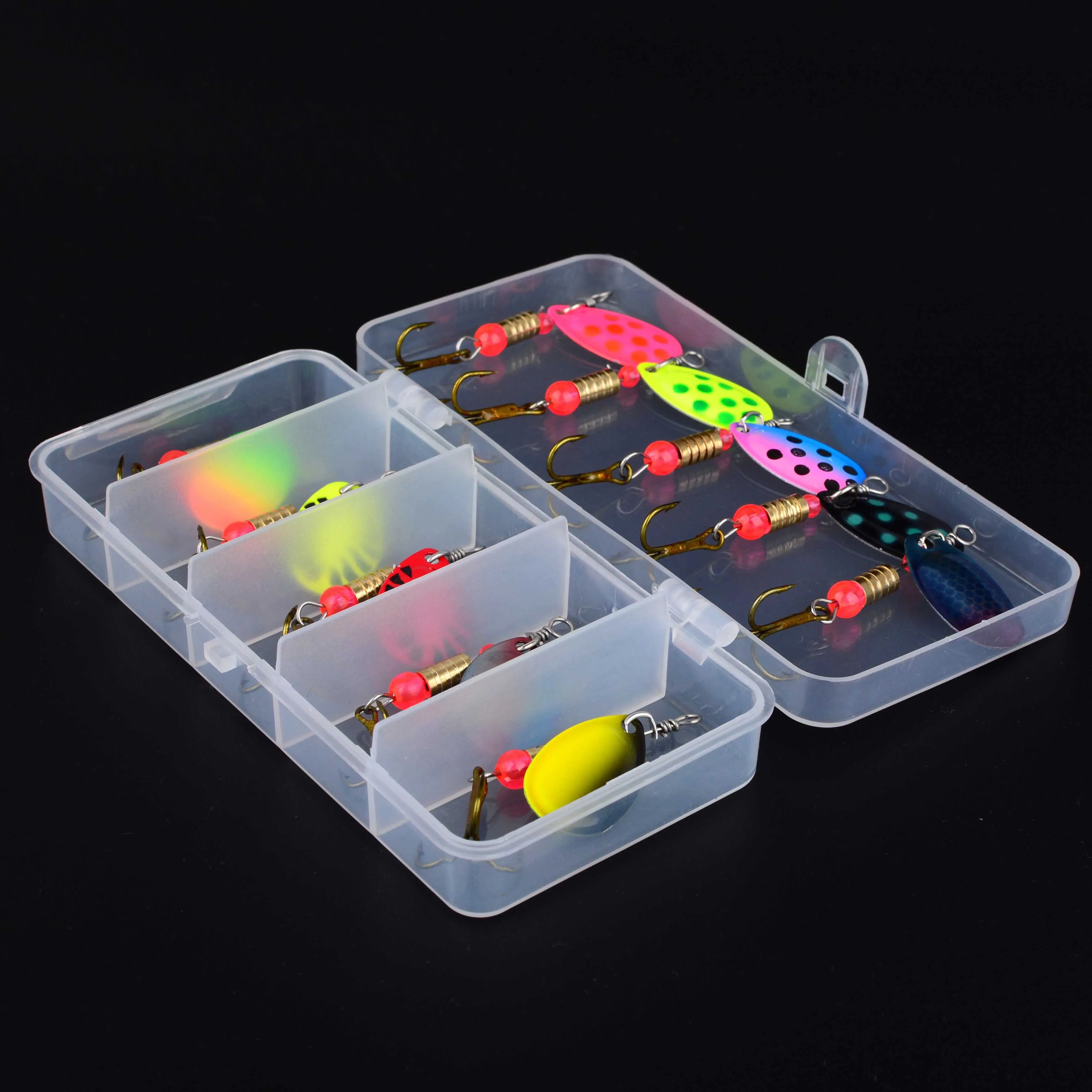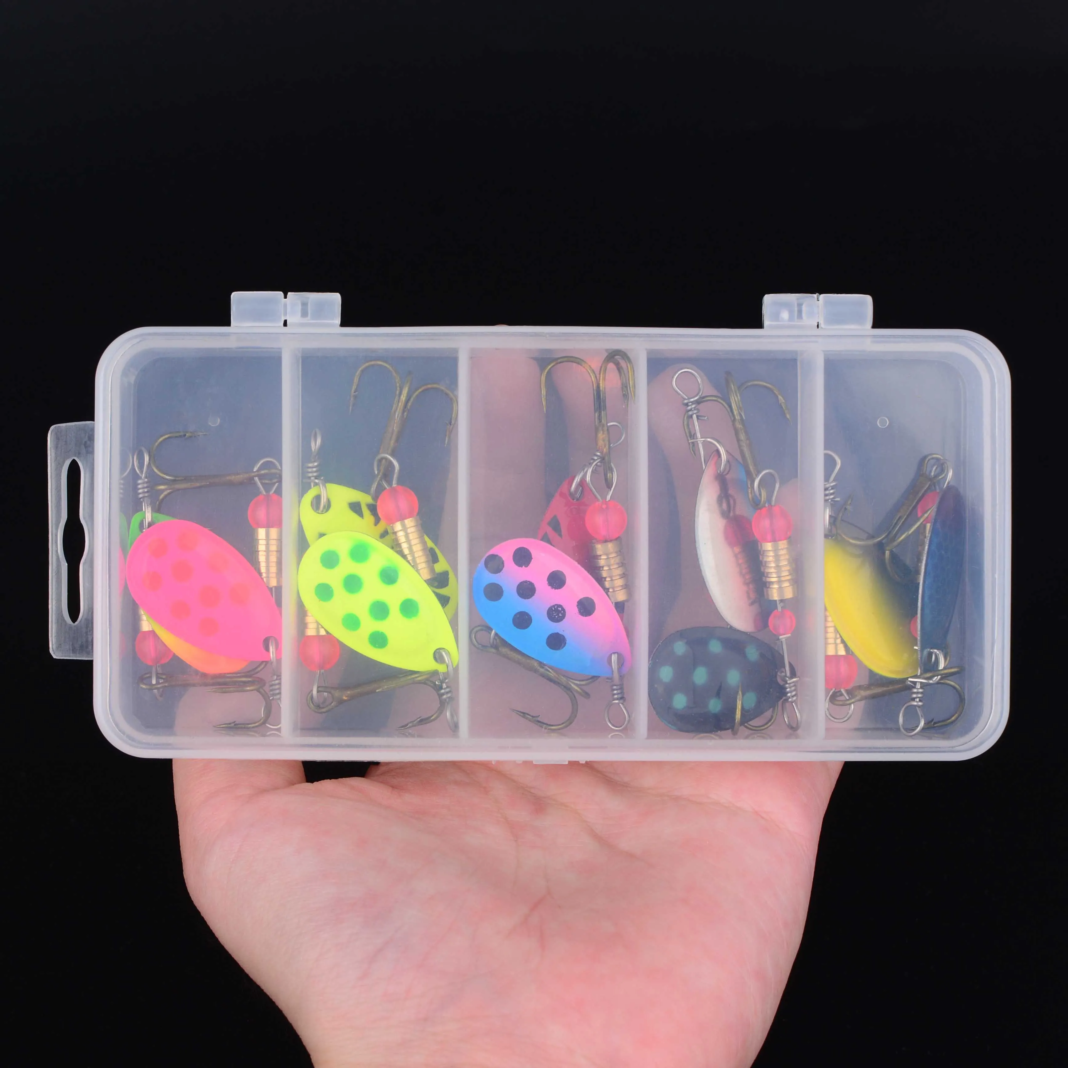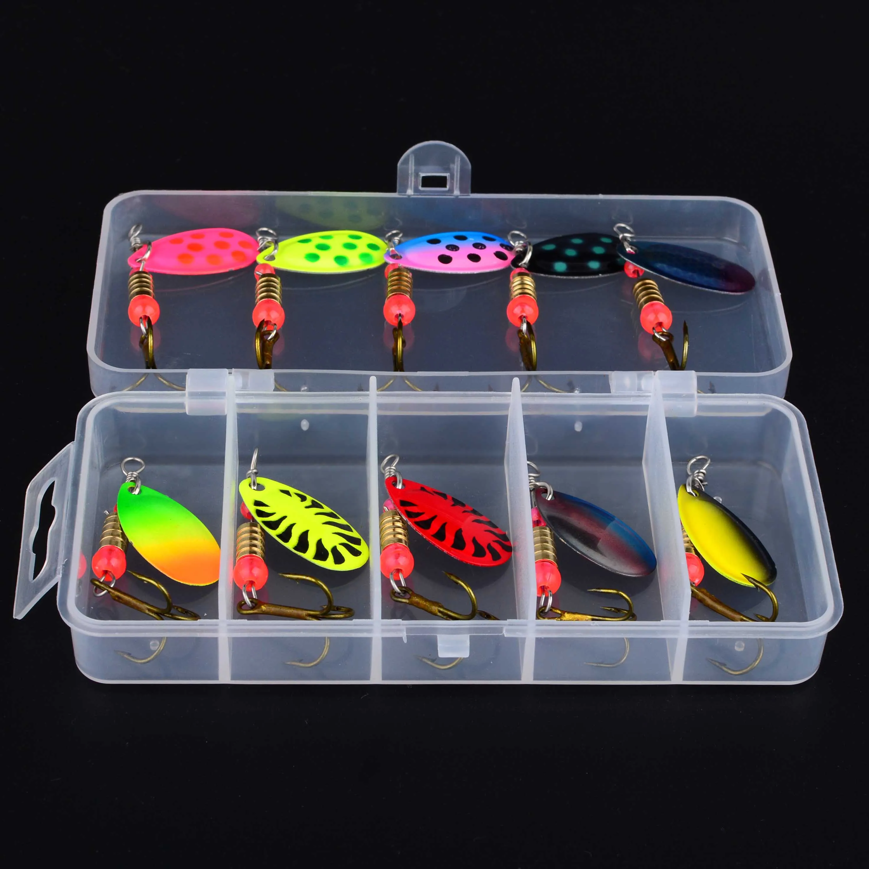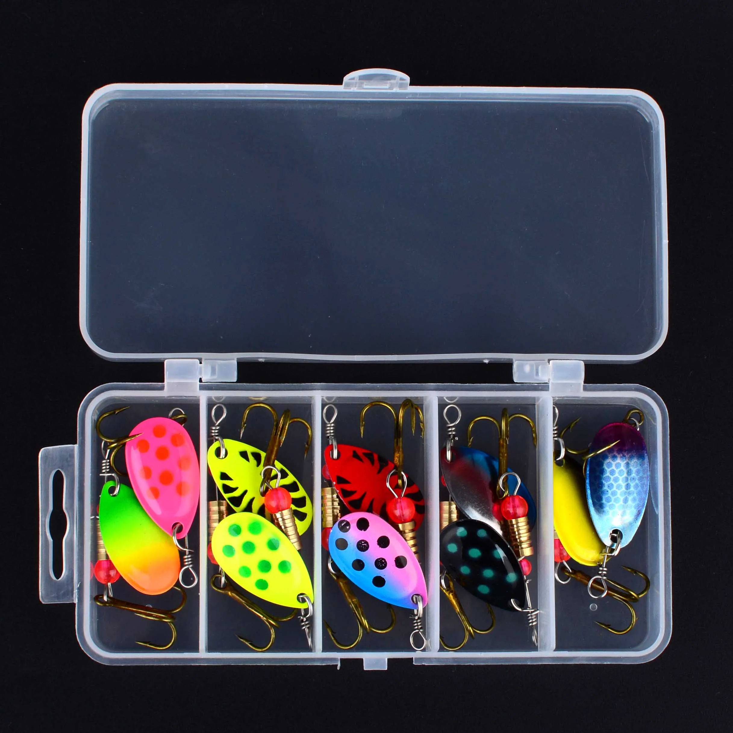10 unids/set Peche Spinner Señuelos de Pesca Wobblers CrankBaits Jig Shone Metal lentejuelas trucha cuchara con anzuelos para Pesca de carpa Pesca