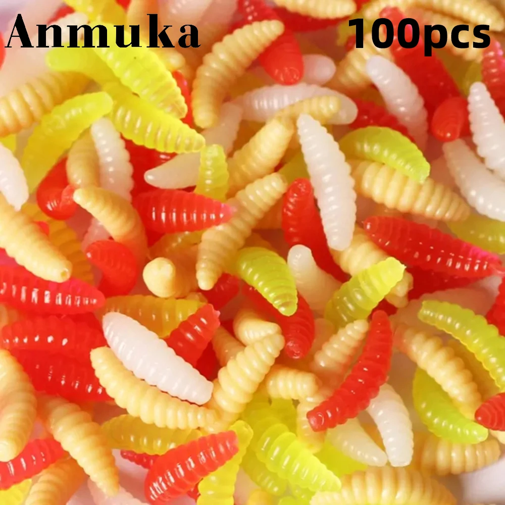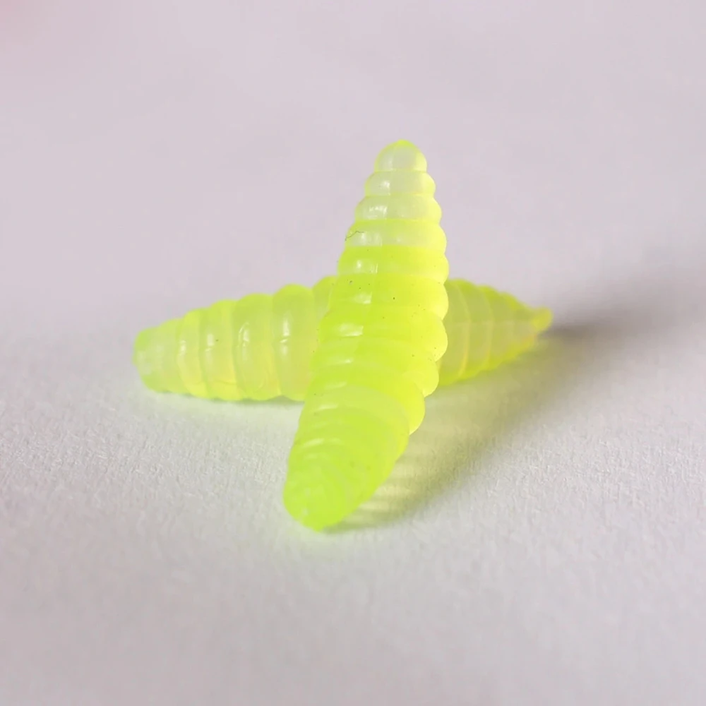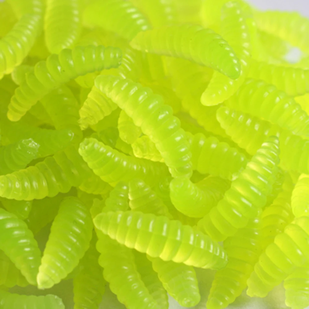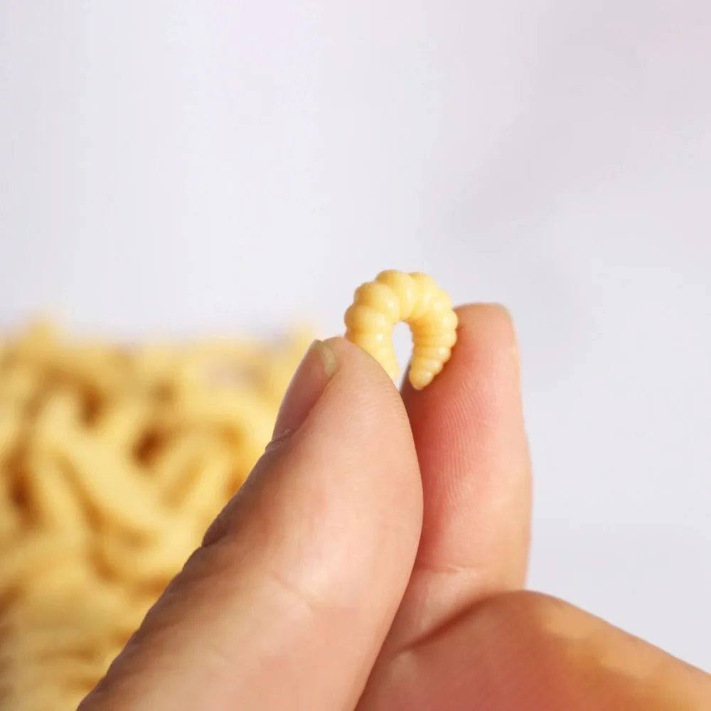 100/200 unids/bolsa 2cm pan gusano silicona cebos artificiales gusano larva suave señuelo de pesca ganchos biomiméticos olor gusanos resplandor de camarones