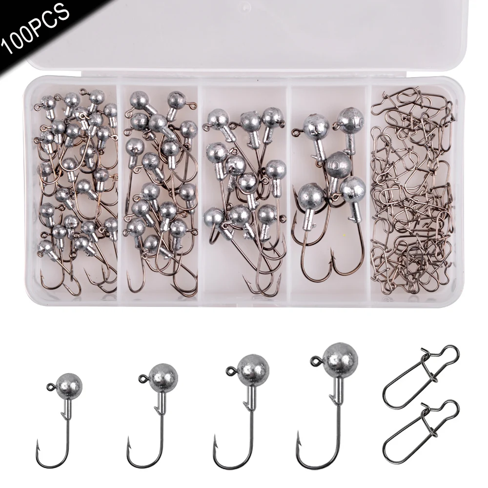 100/58/20 piezas plomo Jig Head manivela anzuelos de pesca Jigging cabeza gusano suave cebo trucha bajo líder Jigs Rig agua salada anzuelos de púas