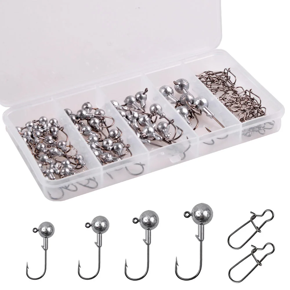 100/58/20 piezas plomo Jig Head manivela anzuelos de pesca Jigging cabeza gusano suave cebo trucha bajo líder Jigs Rig agua salada anzuelos de púas