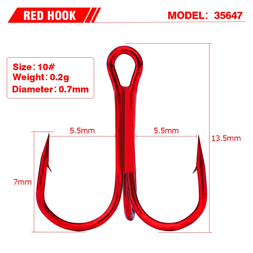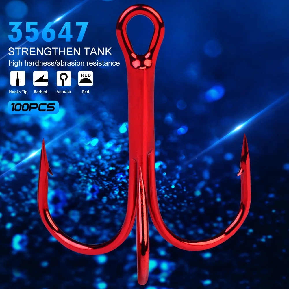 100 anzuelos de pesca triples de acero con alto contenido de carbono 2/4/6/8/10 # Aparejos de pesca Pesca roja
