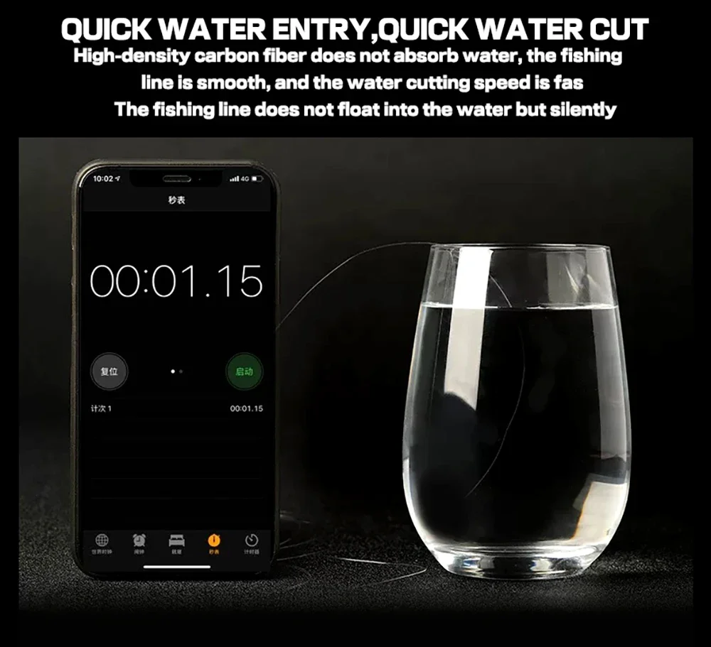 6.La fibra de carbono de alta densidad no absorbe agua, el hilo de pescar es suave y la velocidad de corte del agua es rápida.