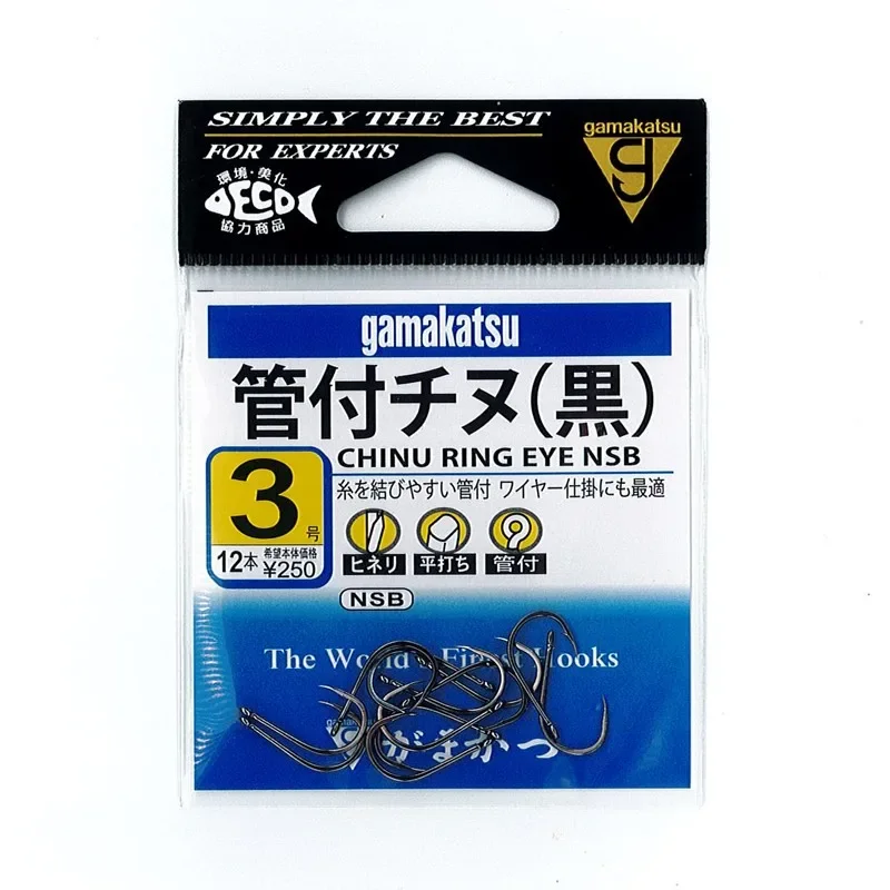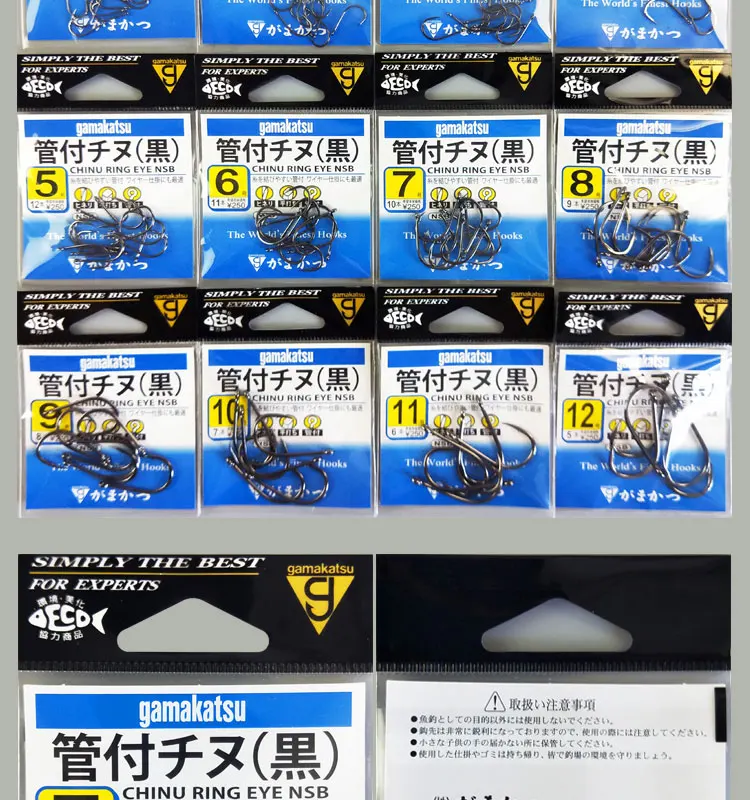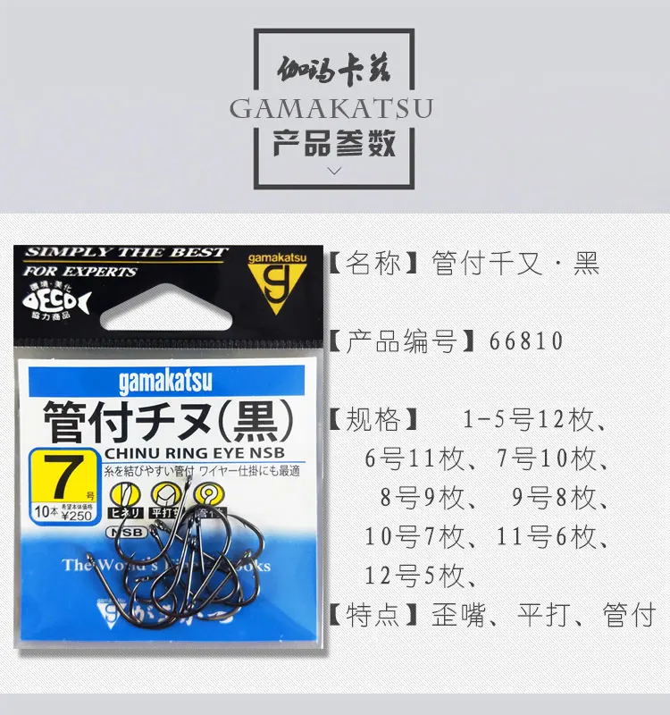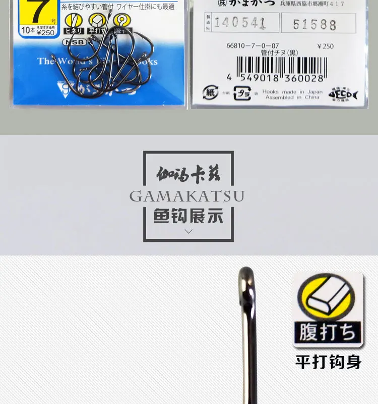 100% materiales japoneses originales, anillo de tubo Gamakatsu Gama importado, anzuelo de pesca negro para lubina, anzuelo de pesca de carpa