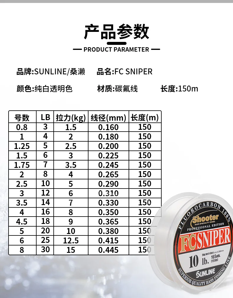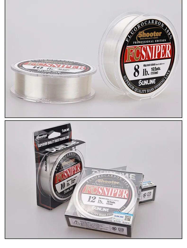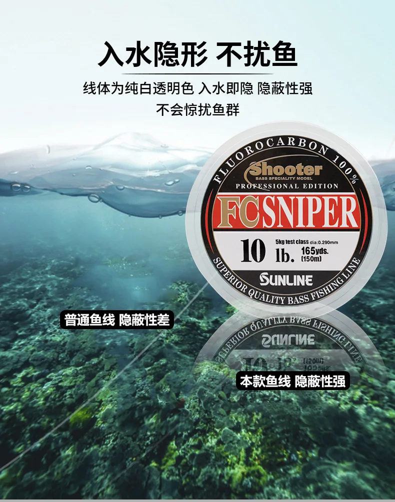 100% Original SUNLINE Shooter FC SNIPER hilo de pescar de fluorocarbono 3LB-30LB 150m