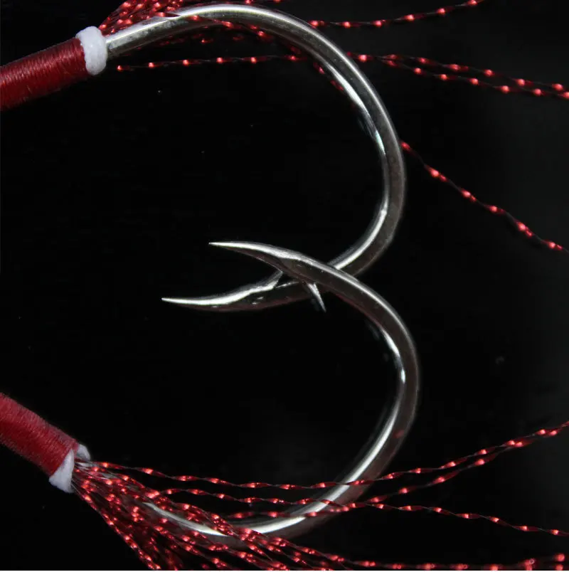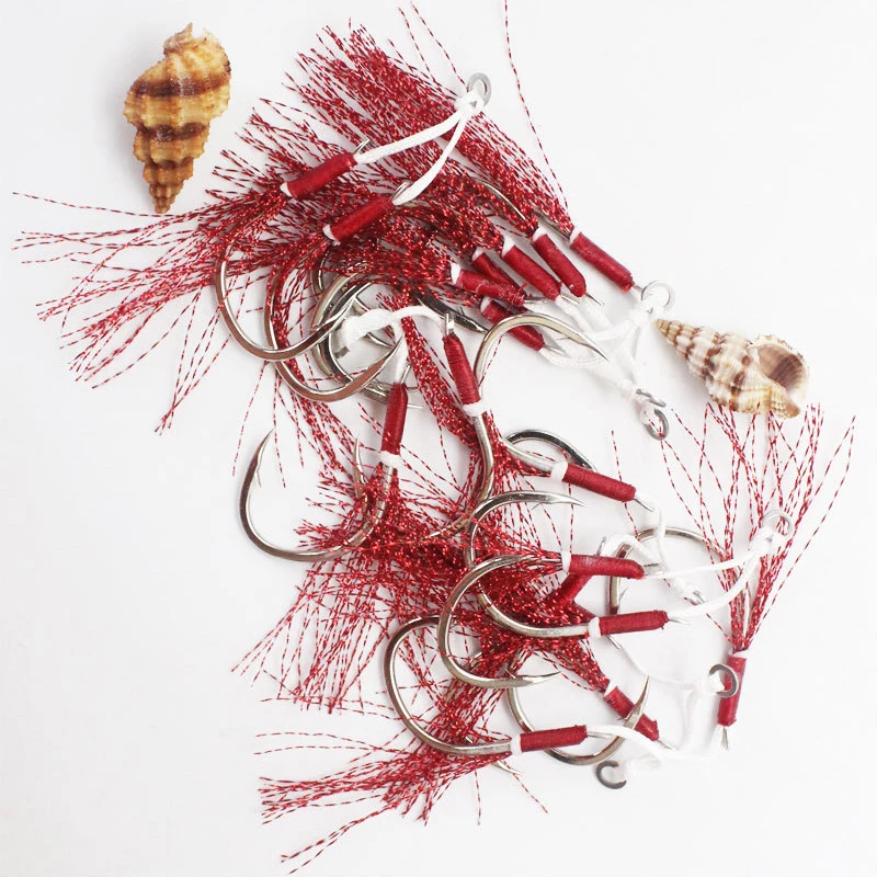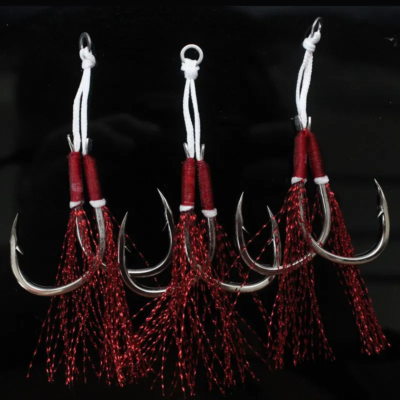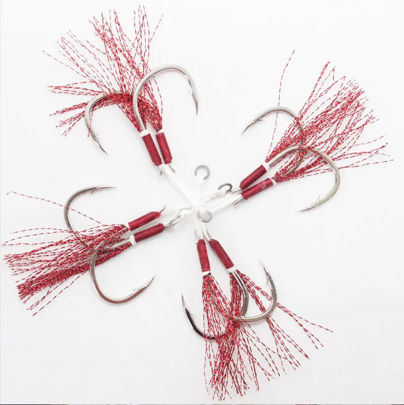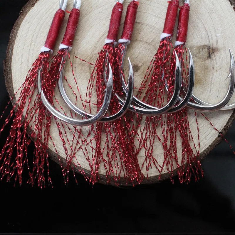 100 pares de anzuelos dobles 16 # 18 # 20 # 24 # Anzuelos de pelo rojo, señuelo de alambre brillante dorado, accesorios para anzuelos de Pesca, aparejos de Pesca