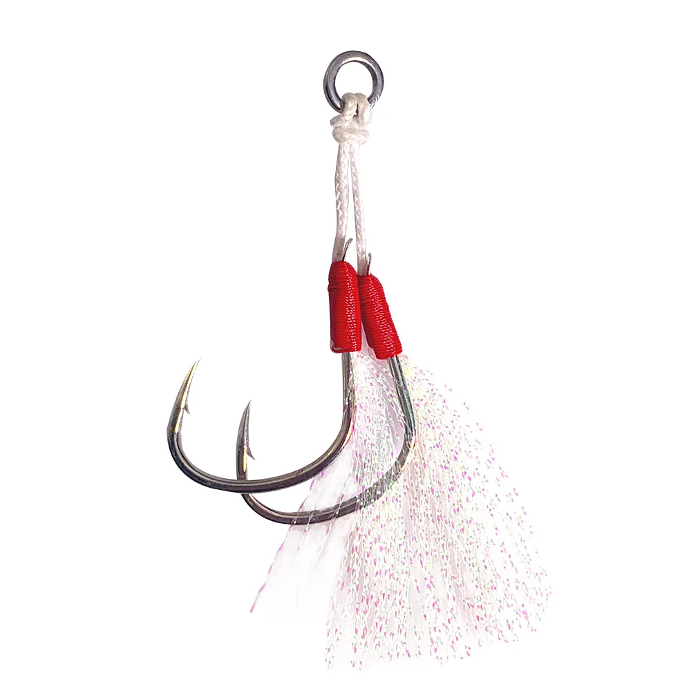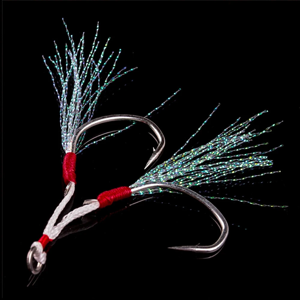 100 pares de anzuelos dobles de acero rico en carbono, placa de hierro chapada en estaño, anzuelo de plomo, señuelo de Pesca de mar de oscilación lenta, accesorio de cebo
