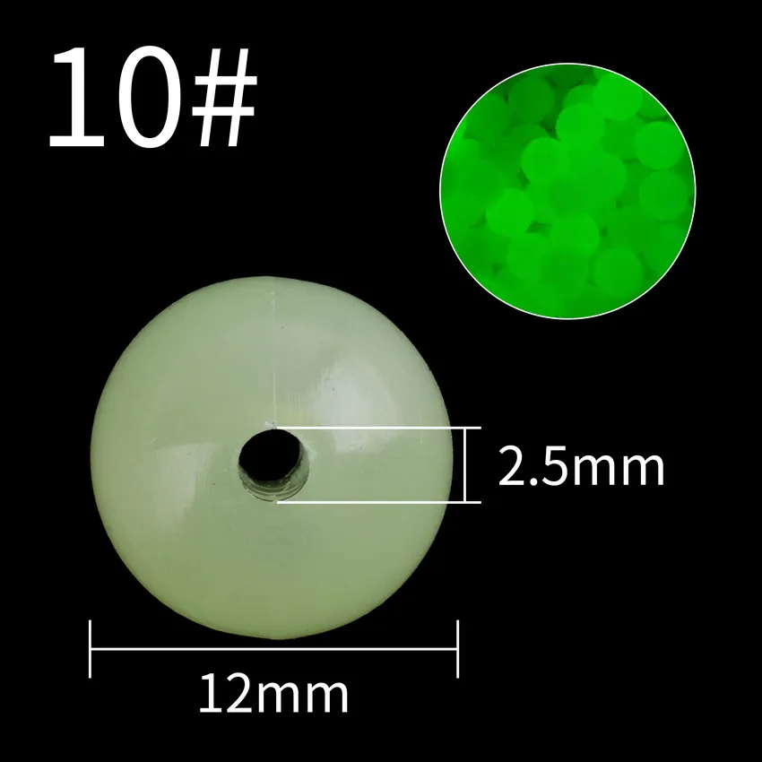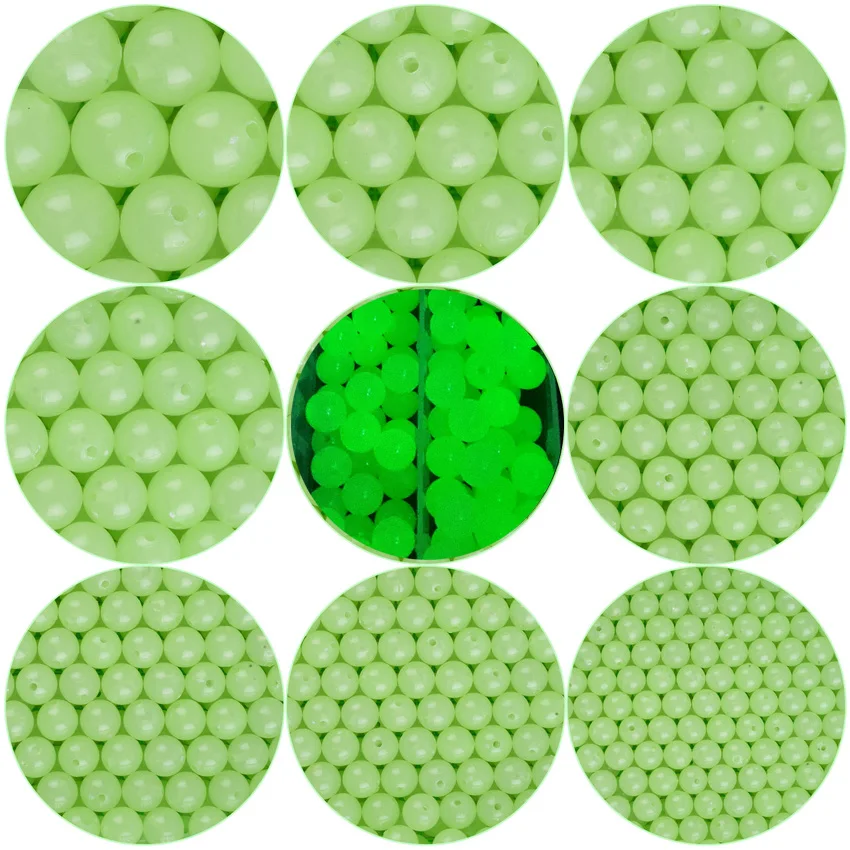 100 piezas de cuentas de pesca duras, 4mm-10mm, cuentas de plástico verde, tope de parada de pesca redondo, aparejos de pesca de carpa