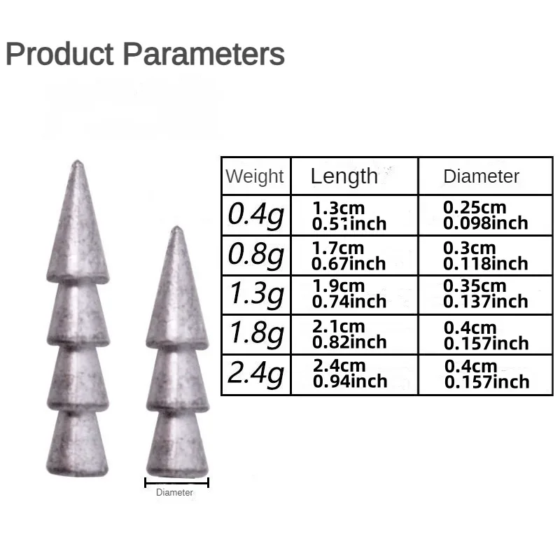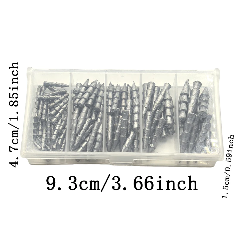 100 piezas: 30 × 0,4g, 30 × 0,8G, 20 × 1,3G, 10 × 1,8G, 10 × 2,4g