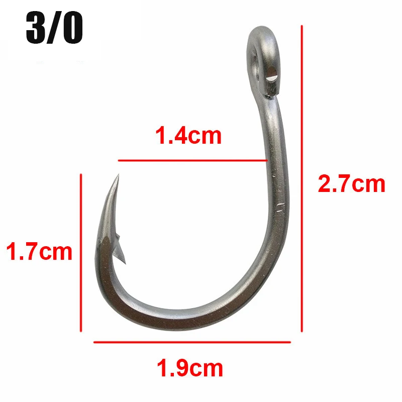 Anzuelos de pesca de cebo de atún de gran tamaño, 100, acero inoxidable, blanco, fuerte, 10884, 3/0, 4/0, 5/0, 6/0, 7/0, 8/0, 9/0, 10/0