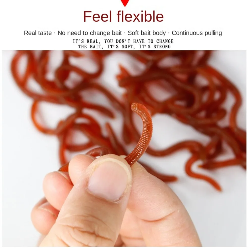 Earthworm shaped design, create life-like swimming actions in water, grabbing the attention of fish.