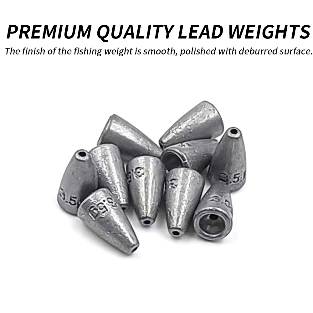 PESO DE PLOMO DE CALIDAD PREMIUM: Hecho de materiales de alta calidad y el recuento es preciso, el acabado del peso de pesca es suave, el molde de peso es agradable, pulido con superficie desbarbada.Sin flash de moldeo, de longitud muy uniforme y sin huecos en el cable.